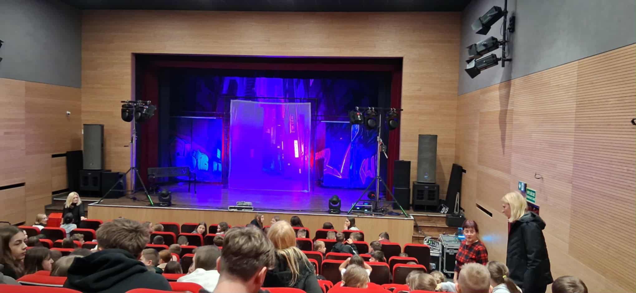W dniu 5 listopada klasy 6, 7 i 8 pojechali do MDK w Lubaczowie. Aktorzy przedstawili spektakl edukacyjno-profilaktyczny pod tytułem „Gra bez reguł” przygotowany przez Narodowy Teatr Edukacji z Wrocławia. Zobaczyliśmy występ o technologii i sztucznej inteligencji, który się bardzo uczniom spodobał. Na koniec biły wielkie brawa.