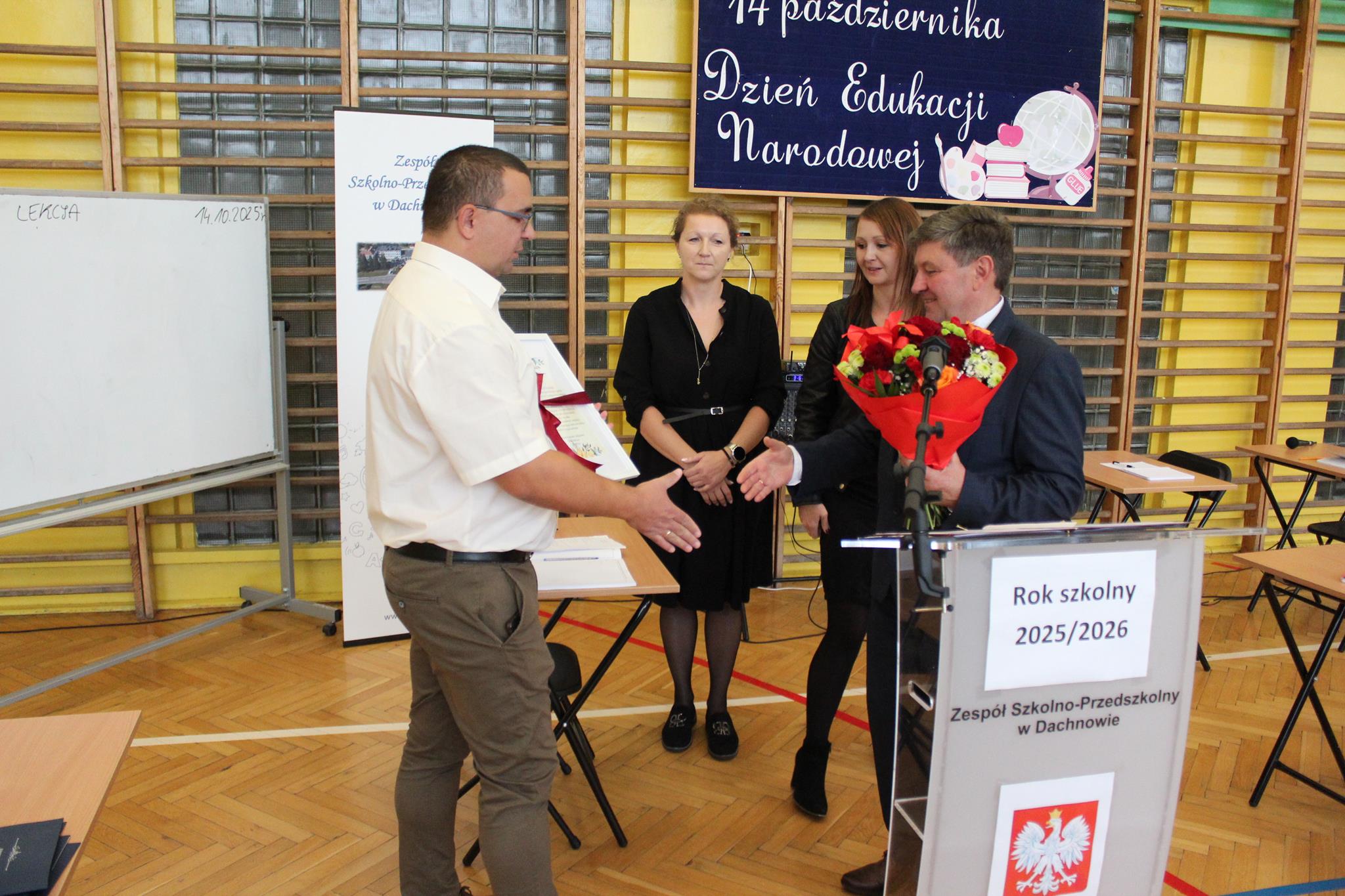Uroczystość rozpoczął Pan Dyrektor, który w swoim przemówieniu podkreślił niezwykle ważną rolę pedagogów w procesie wychowania i kształcenia młodego pokolenia. Wyraził wdzięczność za codzienny trud, zaangażowanie i poświęcenie, a także wręczył nauczycielom oraz pracownikom szkoły nagrody.