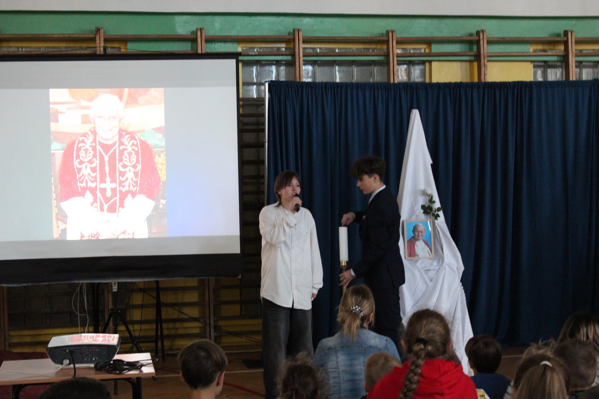 Uroczystość przebiegła w ciepłej i spokojnej atmosferze. To był naprawdę piękny dzień, w którym cała szkoła mogła razem wspominać i uczcić papieża Polaka.