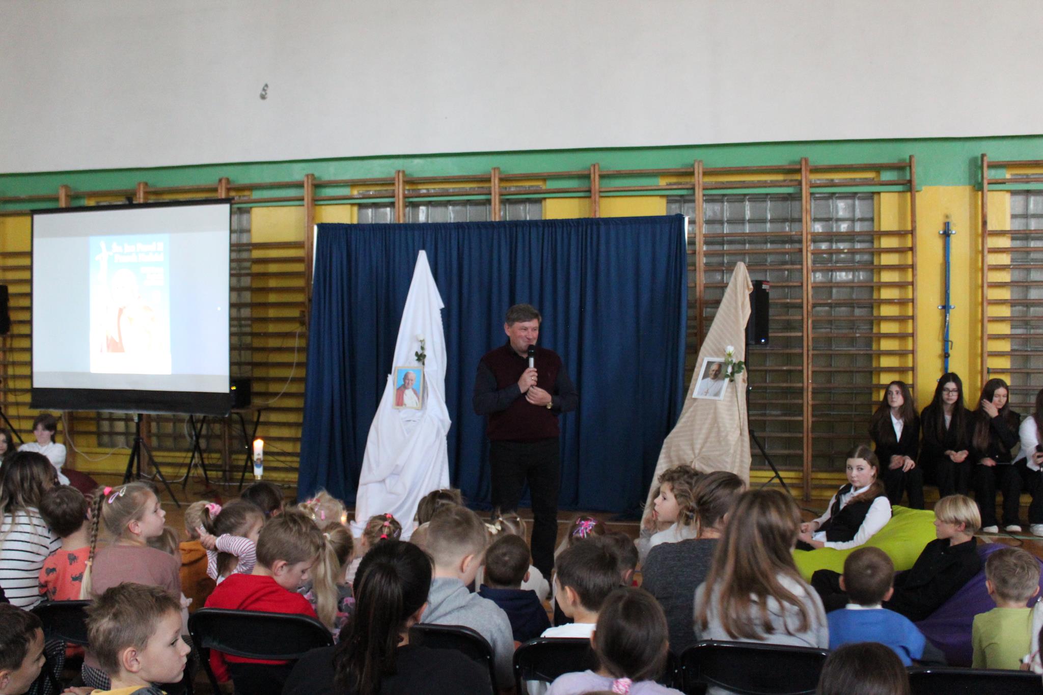 Dnia 29 października w naszej szkole obchodziliśmy Dzień Papieski. To ważne i wyjątkowe wydarzenie poświęcone pamięci świętego Jana Pawła II. Tego dnia cała szkoła spotkała się, aby wspólnie wspominać papieża Polaka.