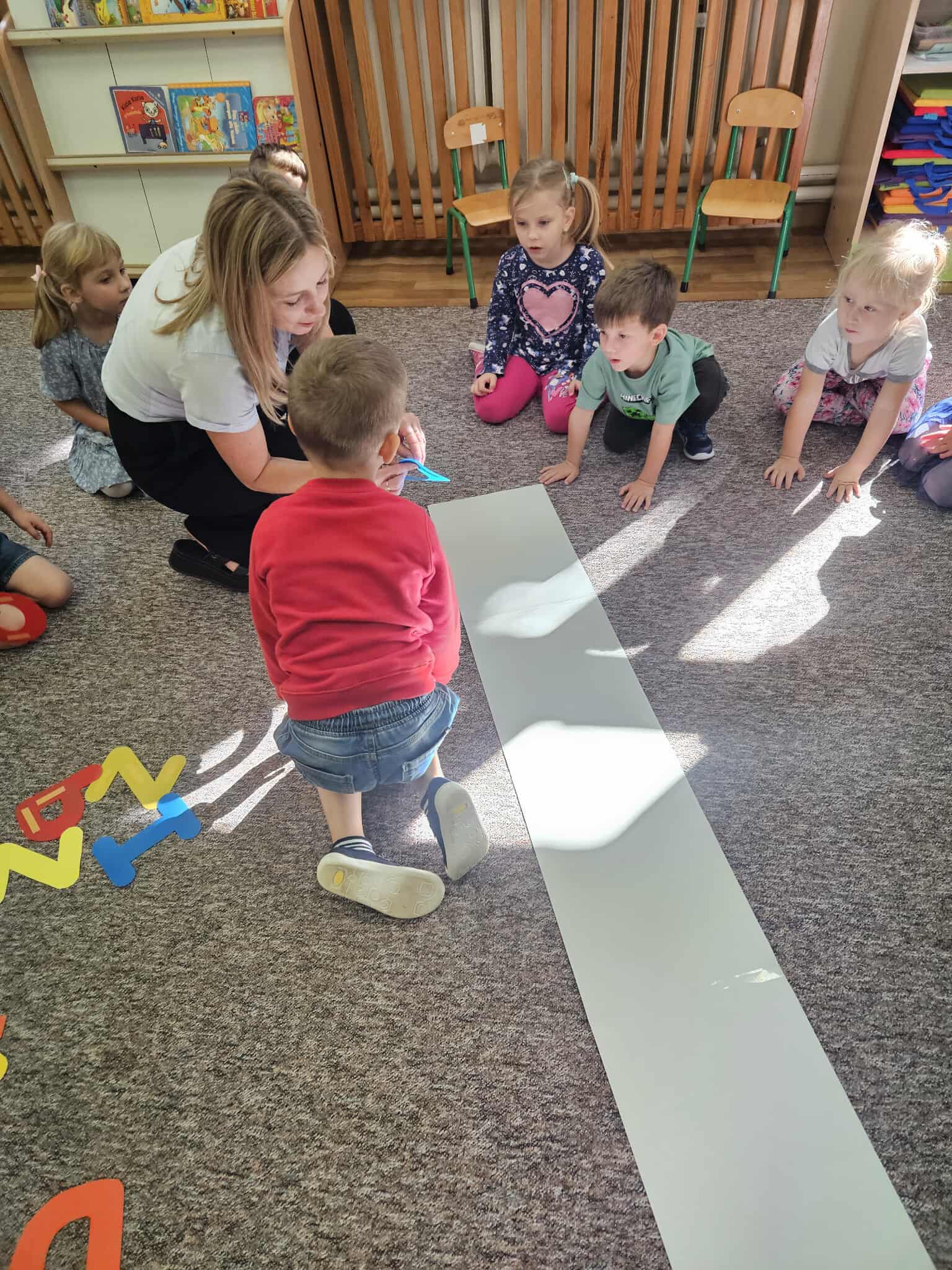 W piątek 12 września w przedszkolu odbył się Dzień Kropki. Z okazji tego dnia, dzieci miały spotkanie z pluszowym krasnalem i wykonywały prace plastyczną. W ramach zajęć ruchowych przedszkolaki przechodziły tor przeszkód i ćwiczyły równowagę.