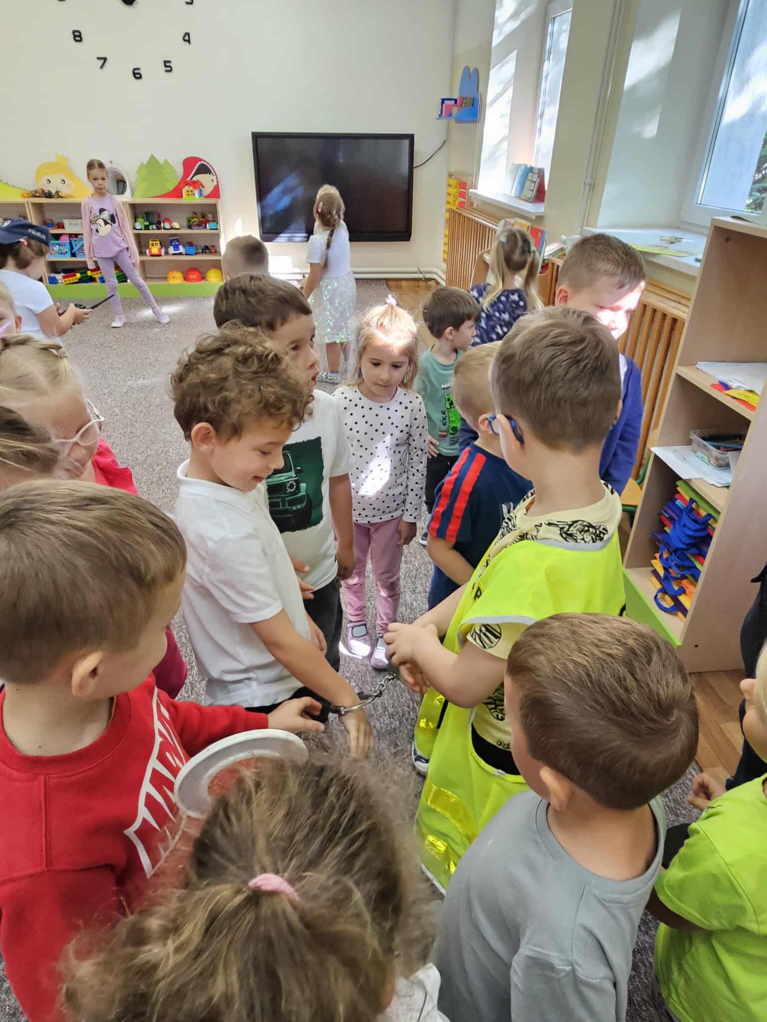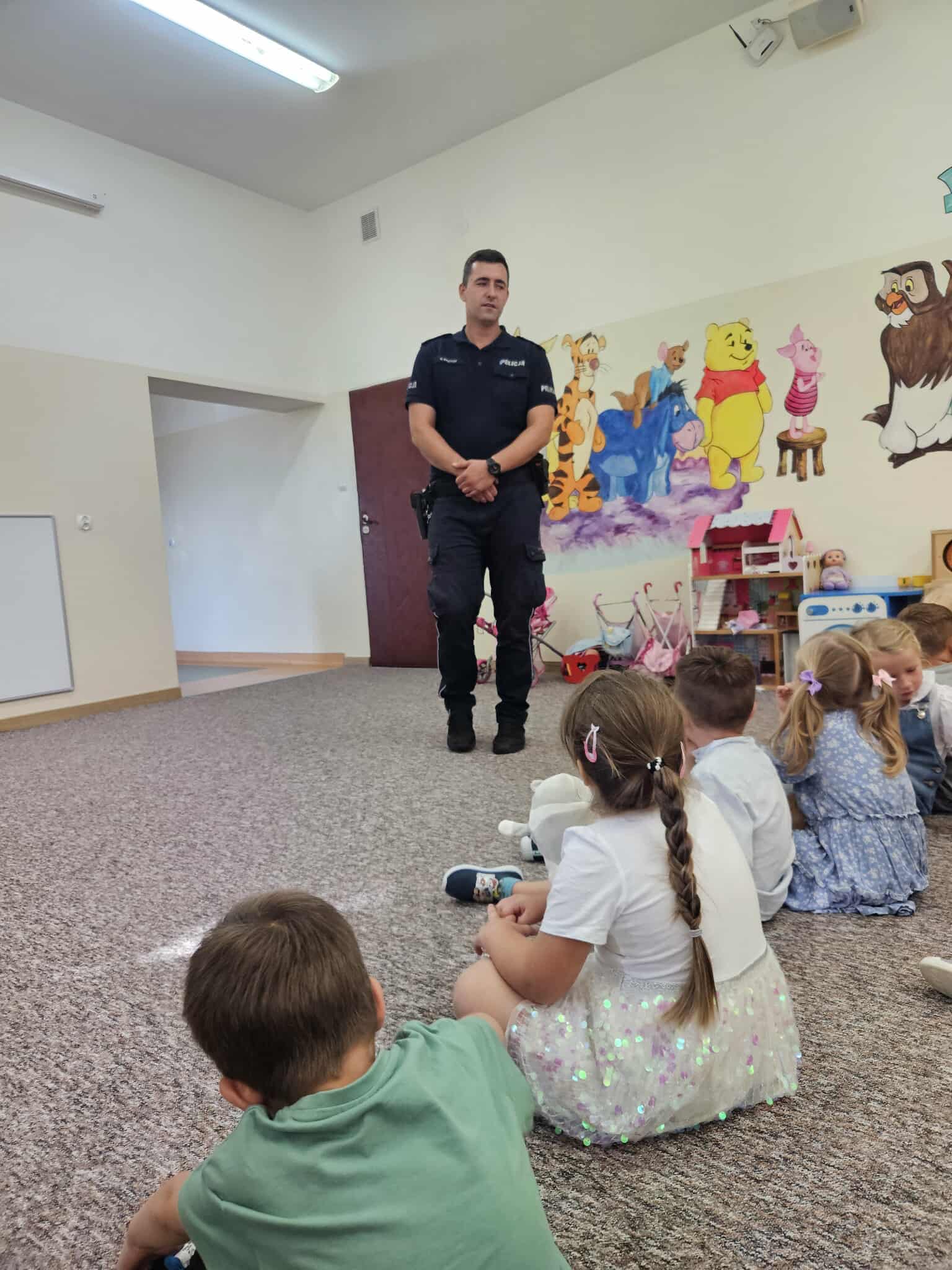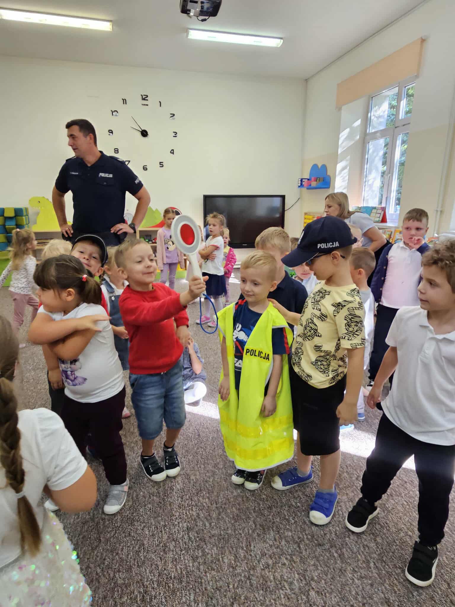 22 września odbyła się ciekawa pogadanka z dzielnicowym posterunku policji w Cieszanowie. Przypomniał on dzieciom podstawowe zasady bezpieczeństwa dotyczące między innymi przejścia dla pieszych, numerów alarmowych, kontaktu z nieznajomymi i sposobu zachowania się w sytuacji zaatakowania przez psa. Dzieci obejrzały narzędzia pracy policjanta.