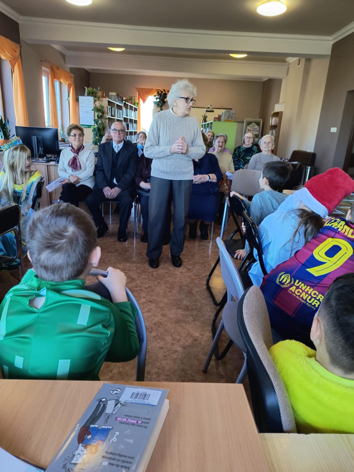 Podczas spotkania uczniowie czytali Seniorom baśnie, a następnie Seniorzy zaprezentowali własne baśnie z morałem, dzieląc się refleksjami i wspomnieniami z czasów dzieciństwa. Rozmowy o dawnych bajkach, które Seniorzy czytali swoim dzieciom, stały się okazją do międzypokoleniowej wymiany wspomnień i wartości.