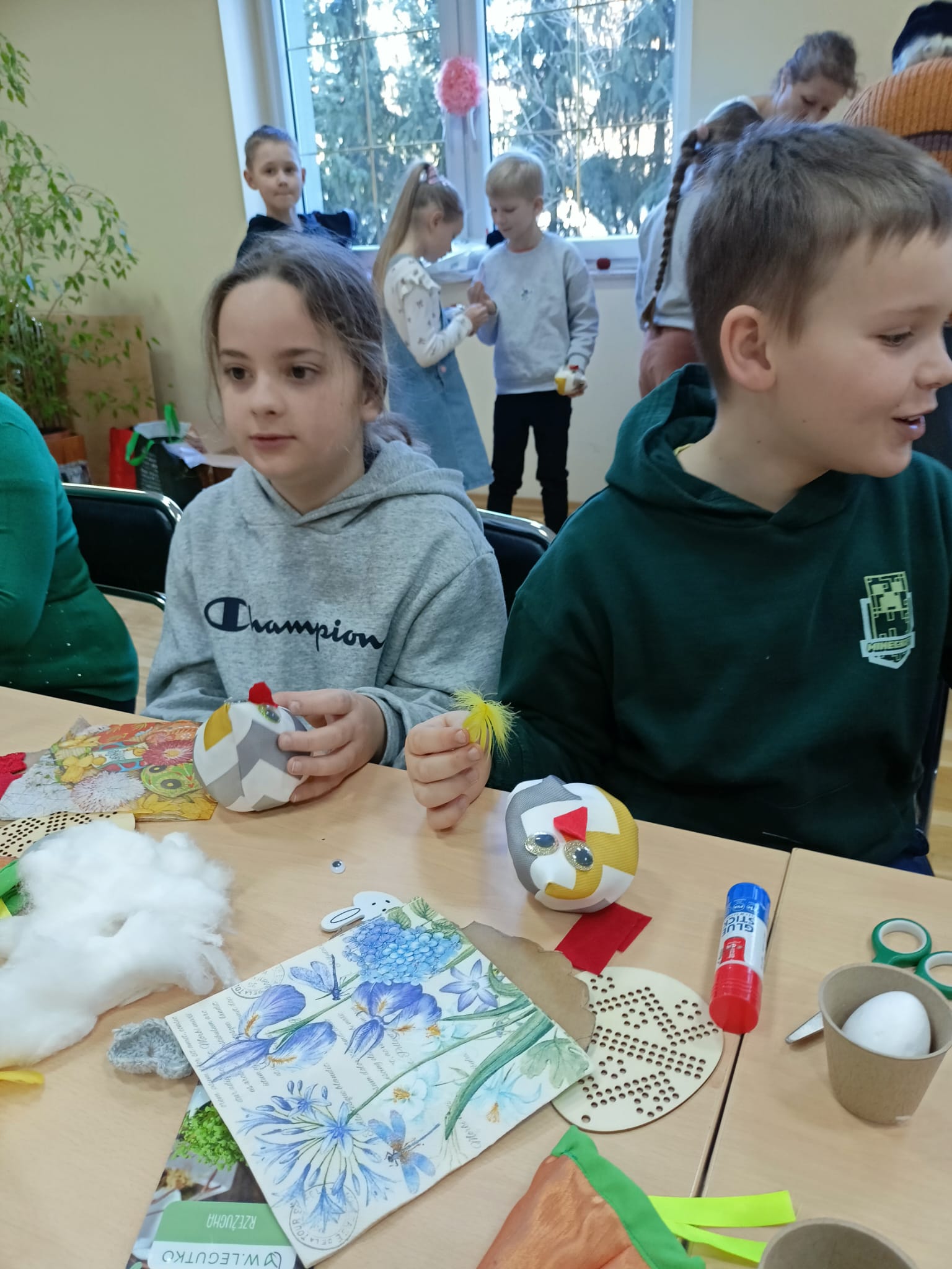 Podczas zajęć dzieci miały okazję rozwijać swoją kreatywność i zdolności manualne, wykonując różnorodne ozdoby wielkanocne. Wśród przygotowanych aktywności znalazły się:
