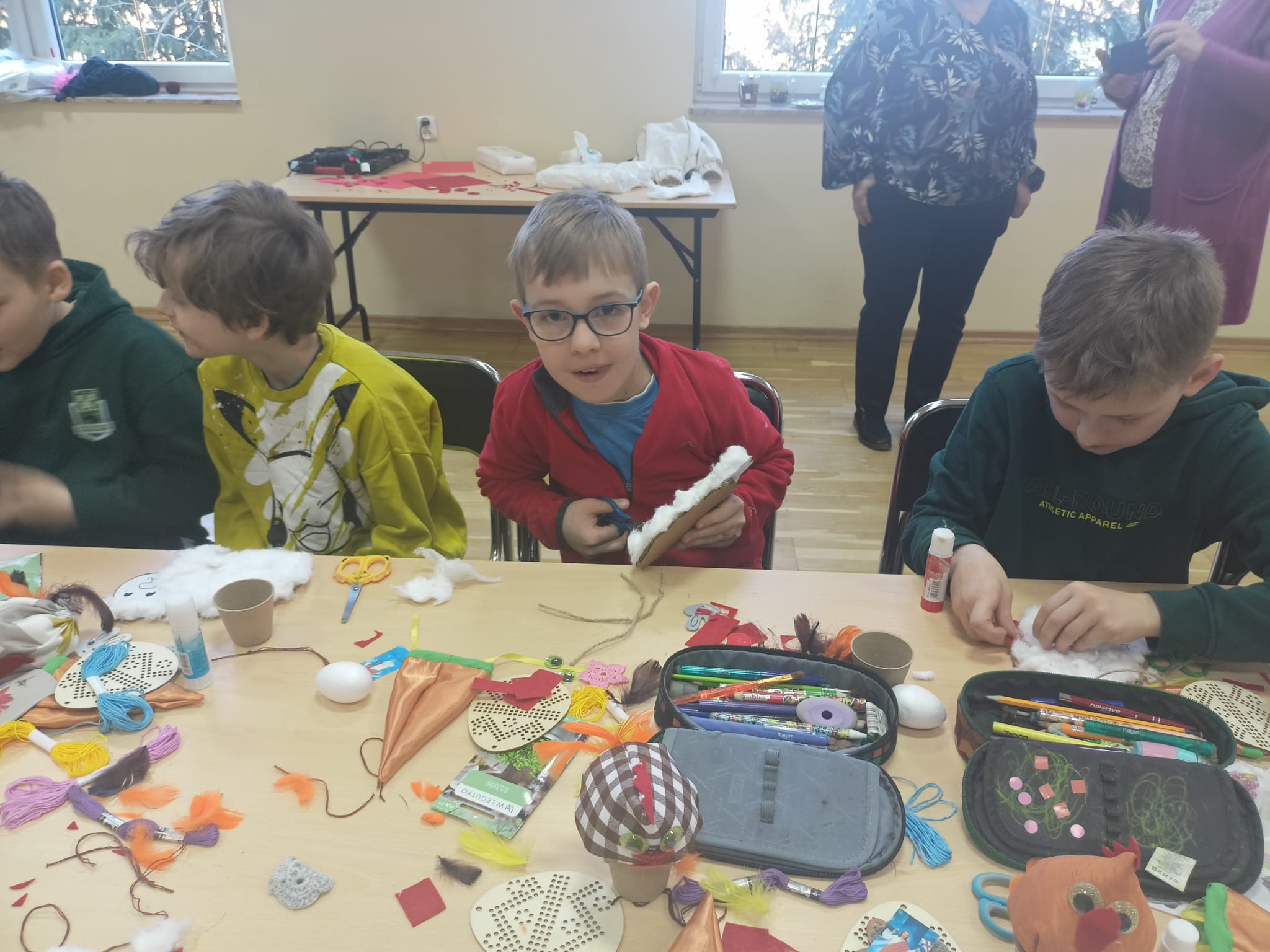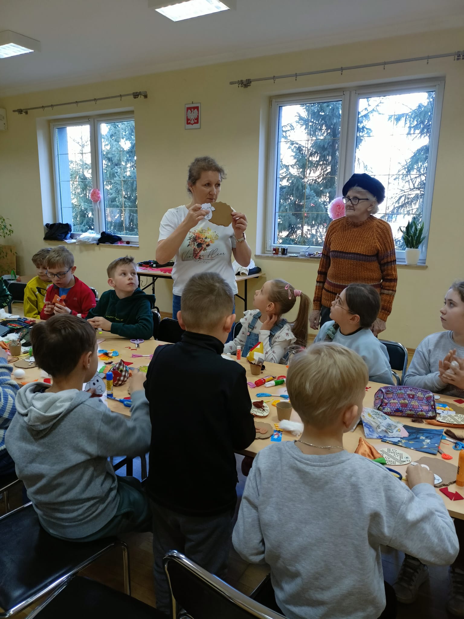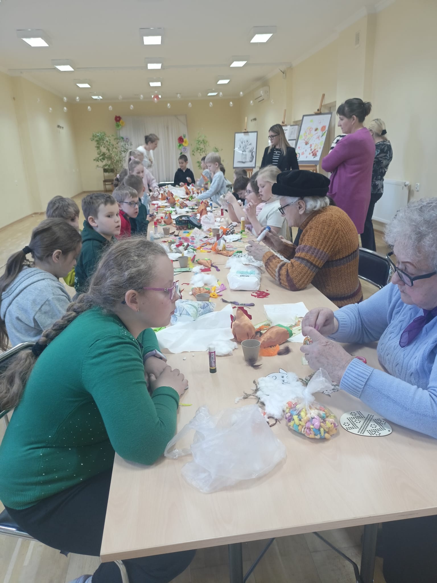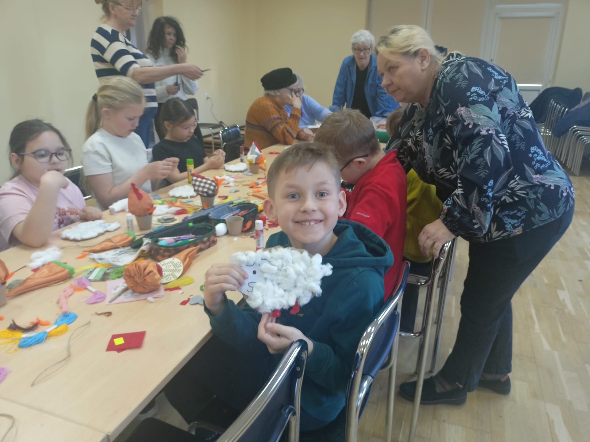 Wszystkie prace były koordynowane przez seniorów oraz opiekuna, przy wsparciu wychowawców klas. Warsztaty przebiegały w bardzo miłej, serdecznej atmosferze, sprzyjającej integracji międzypokoleniowej i wspólnej zabawie.