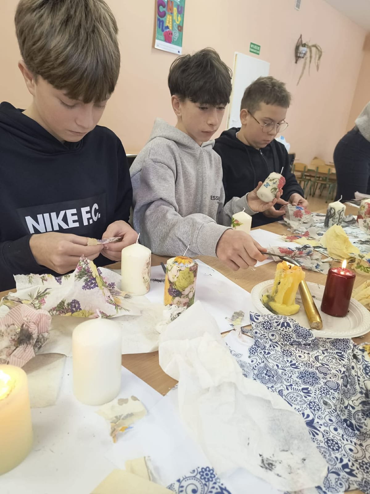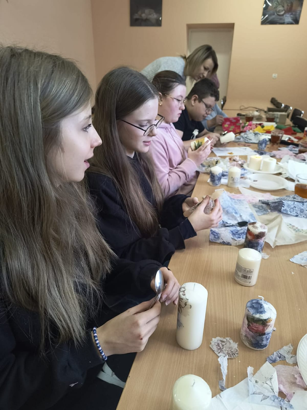 12 stycznia 2026 roku, ramach przygotowań do Dnia Babci i Dziadka, klasa 7 wraz z wychowawczynią panią Anną Krygowską wzięli udział w warsztatach plastycznych, podczas których uczniowie mieli okazję poznać i wypróbować technikę decoupage. Zajęcia poświęcone były zdobieniu świec, które stały się pięknymi, własnoręcznie wykonanymi upominkami na Dzień Babci i Dziadka.