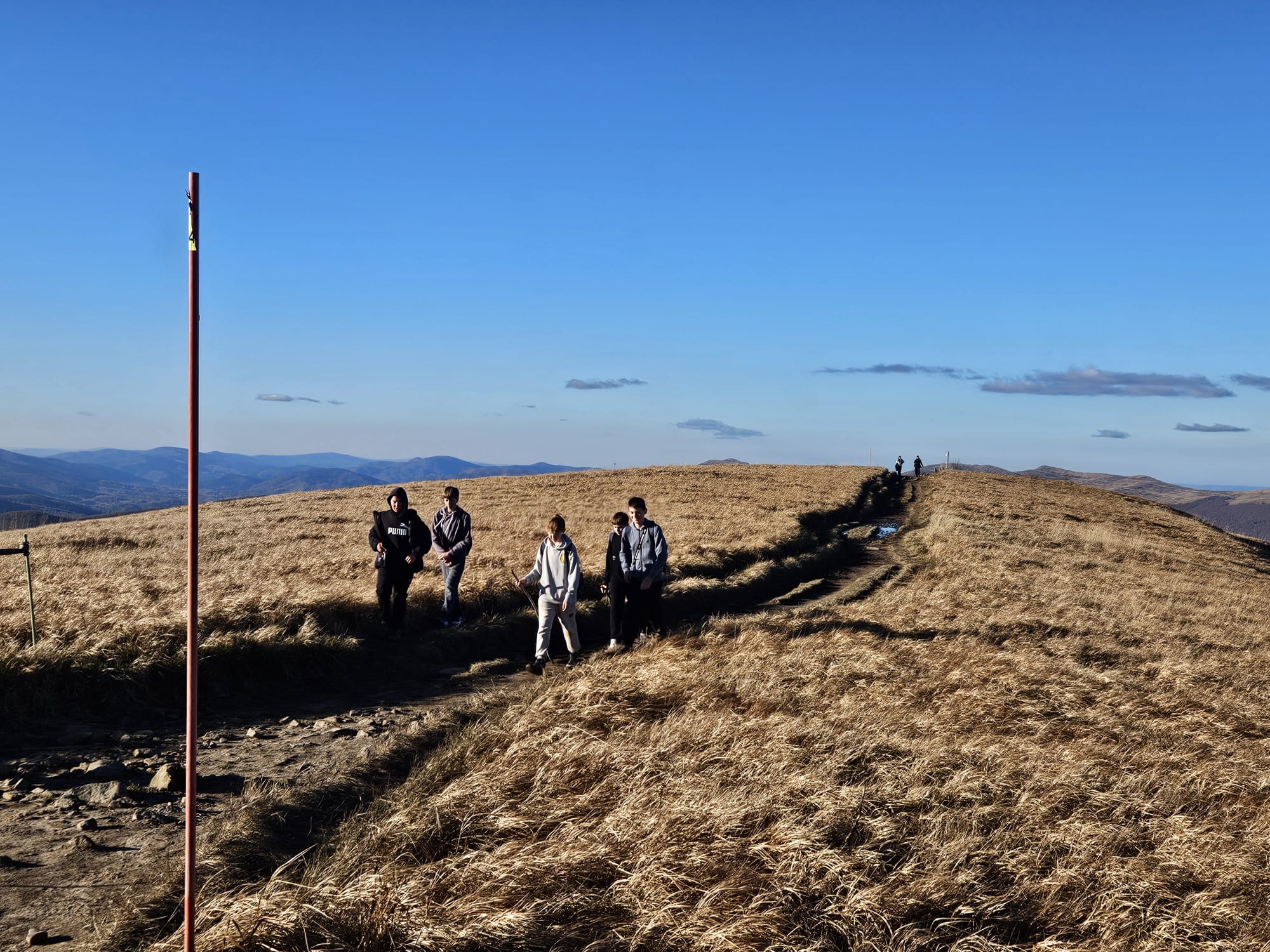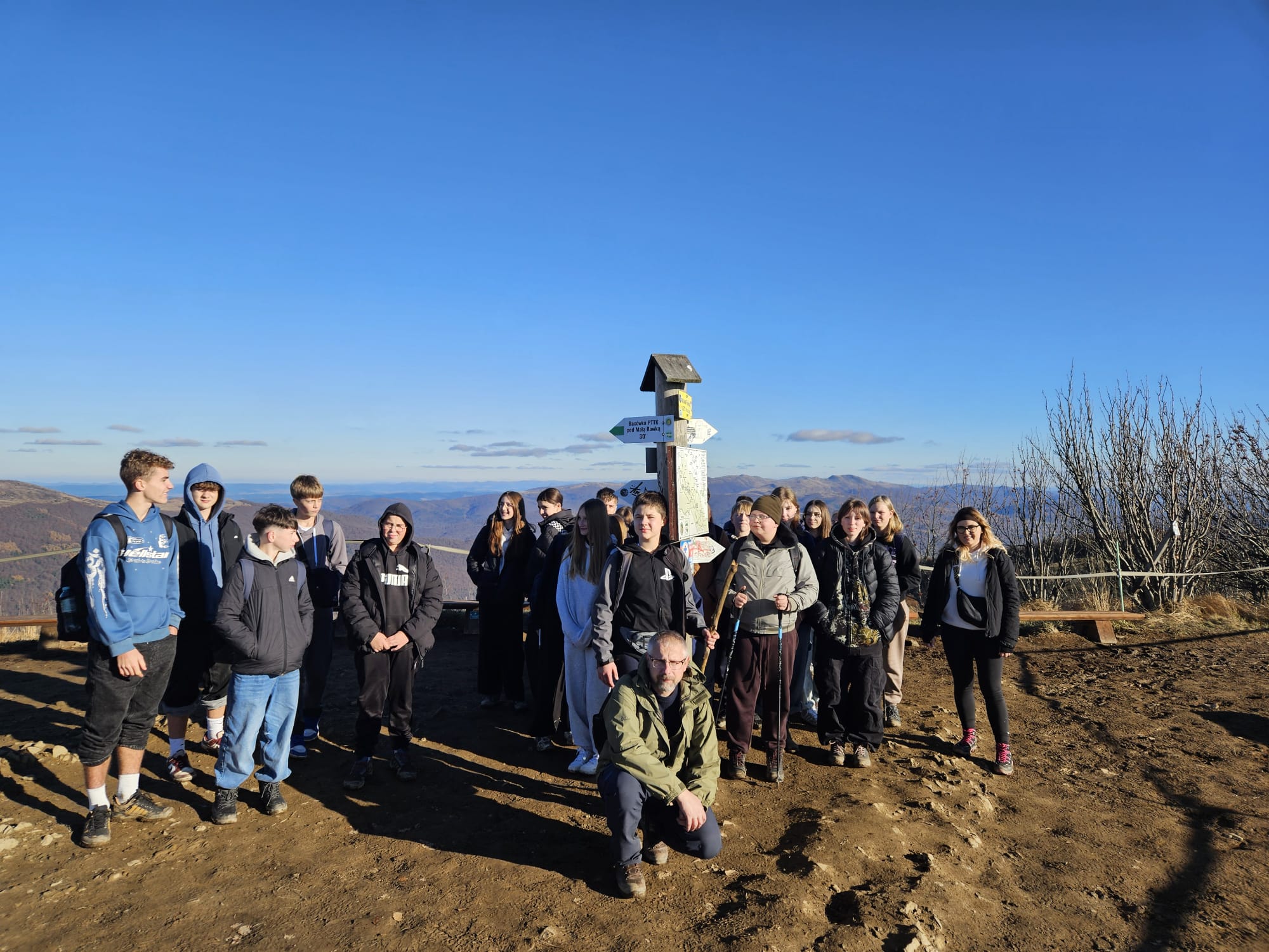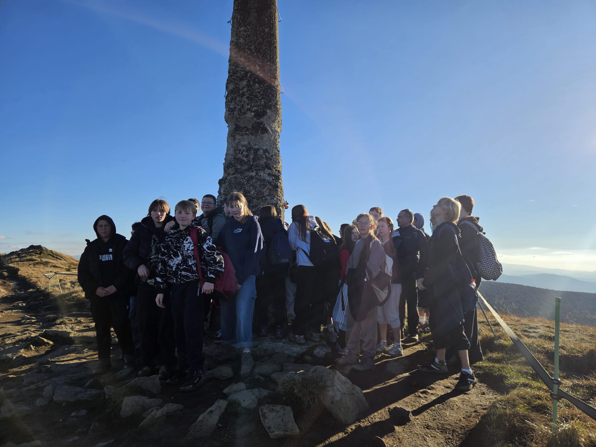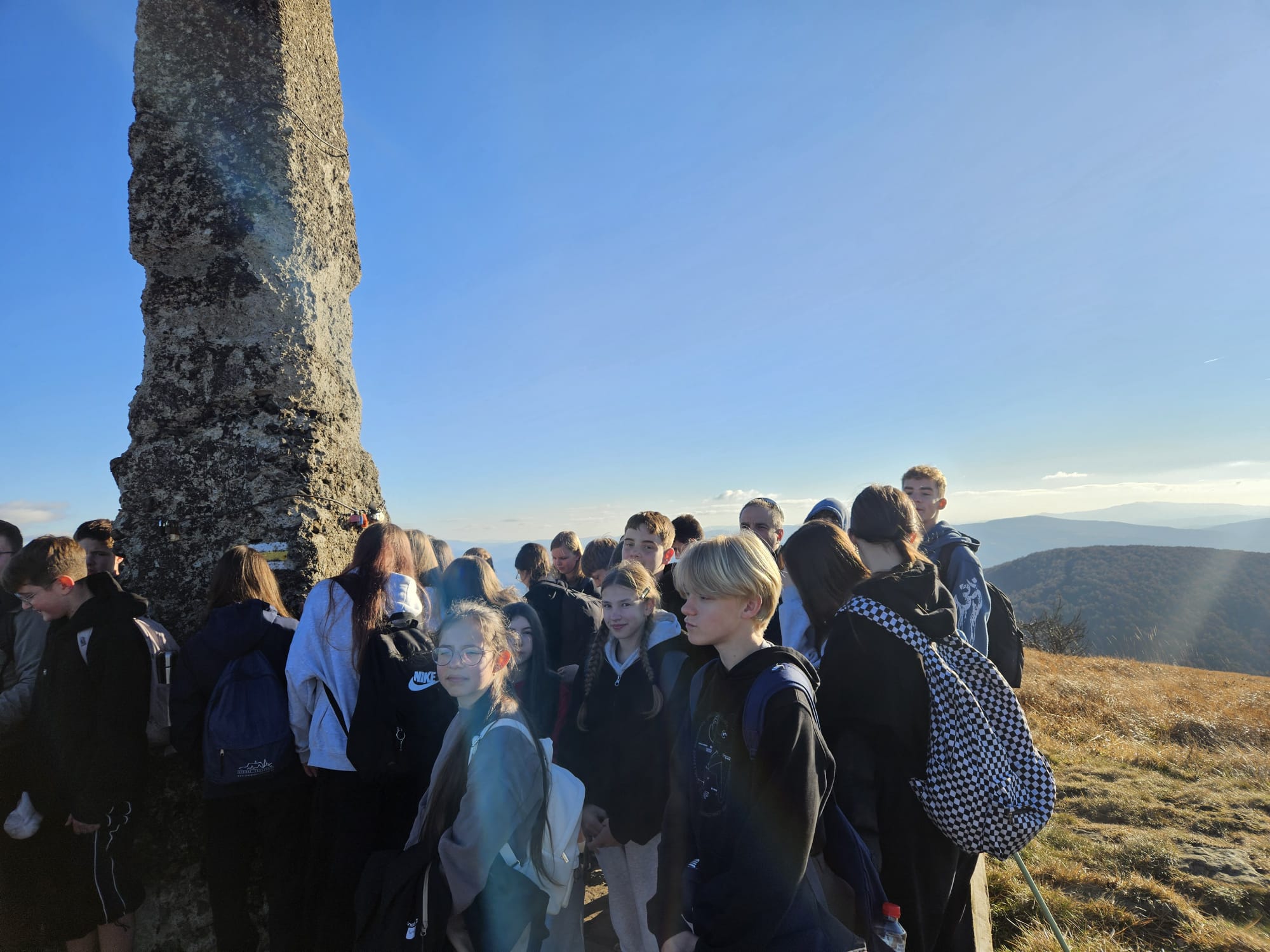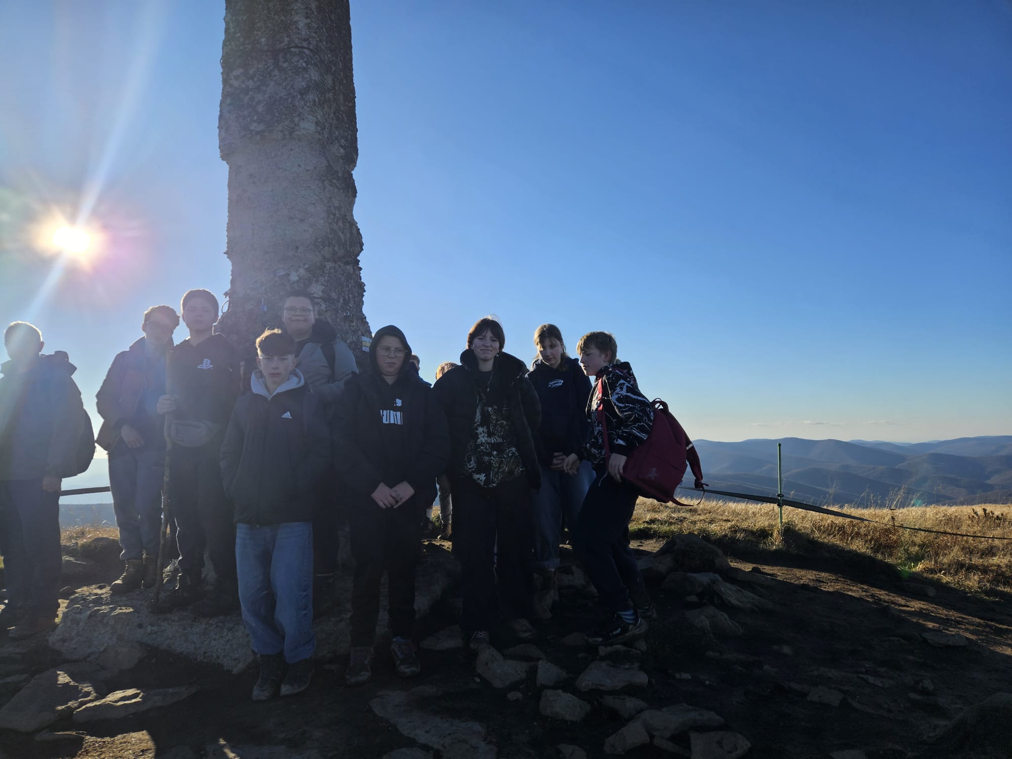 W dniu 6 listopada 2025 roku klasy VI, VII i VIII udały się na wycieczkę w Bieszczady. Celem dzisiejszej wyprawy było zdobycie szczytów Małej i Dużej Rawki. Wspinaczka nie należała do łatwych, jednak wszyscy szczęśliwie wrócili do schroniska w Lesku.