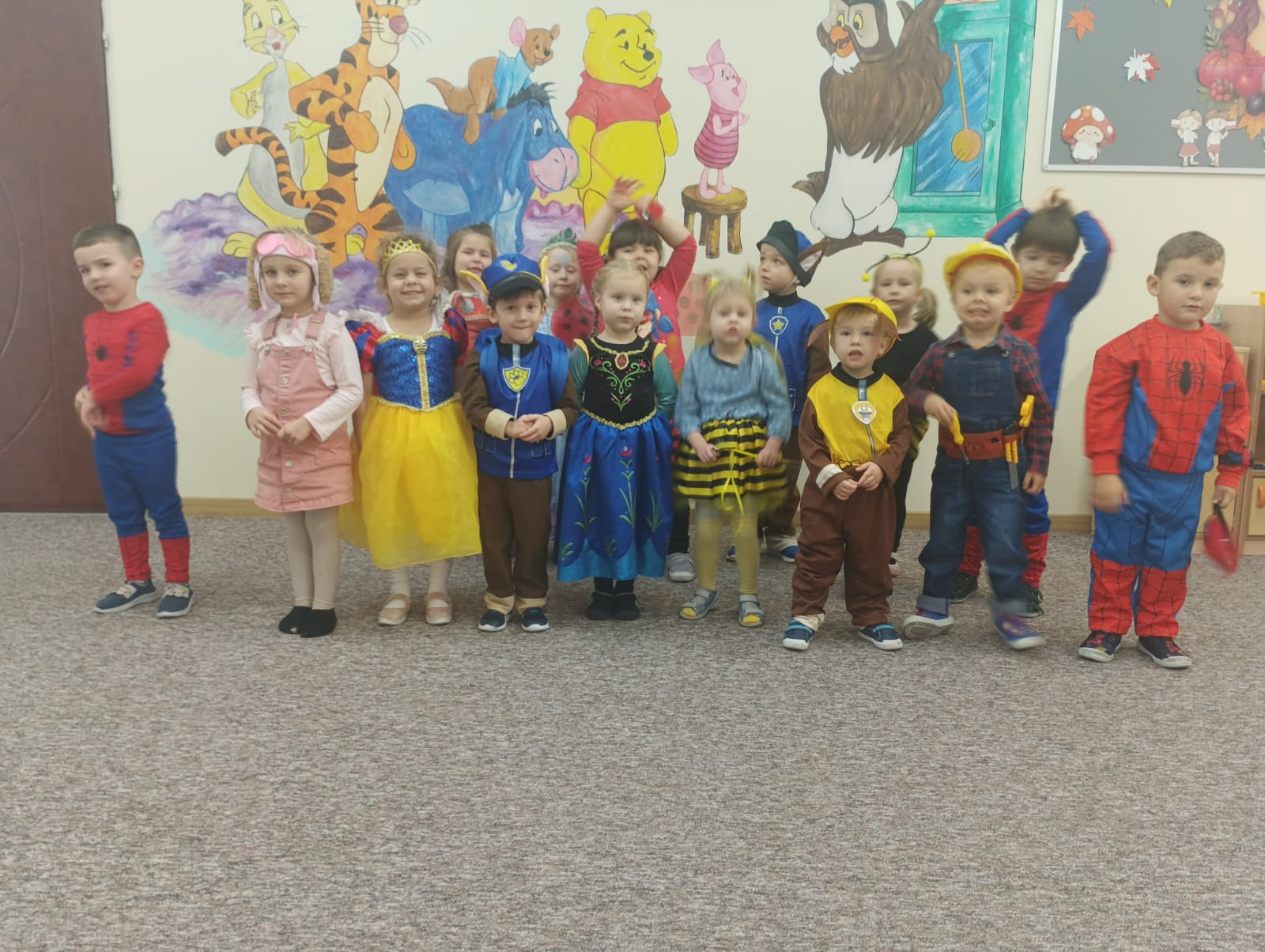 13 listopada, tradycyjnie, dzieci mogły przebrać się za ulubione postaci z bajek. Przedszkolaki zaprezentowały swoje stroje w atmosferze fanfarów i krótko opowiedziały, z jakiej bajki pochodzą przedstawiani bohaterowie.
