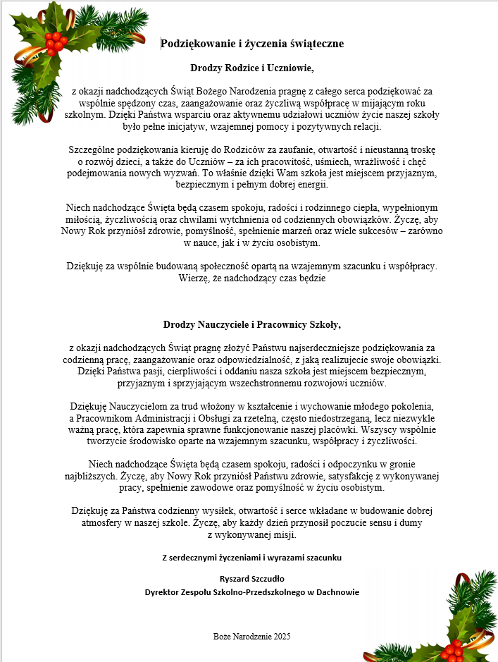 17 grudnia dyrektor szkoły wraz z nauczycielami oraz przedstawicielami uczniów udali się z wizytą do Dziennego Domu Senior+ w Chotylubiu, aby przekazać Seniorom oraz ich opiekunom serdeczne życzenia bożonarodzeniowe. Na ręce Seniorów złożone zostały piękne kartki świąteczne, własnoręcznie przygotowane przez uczniów.