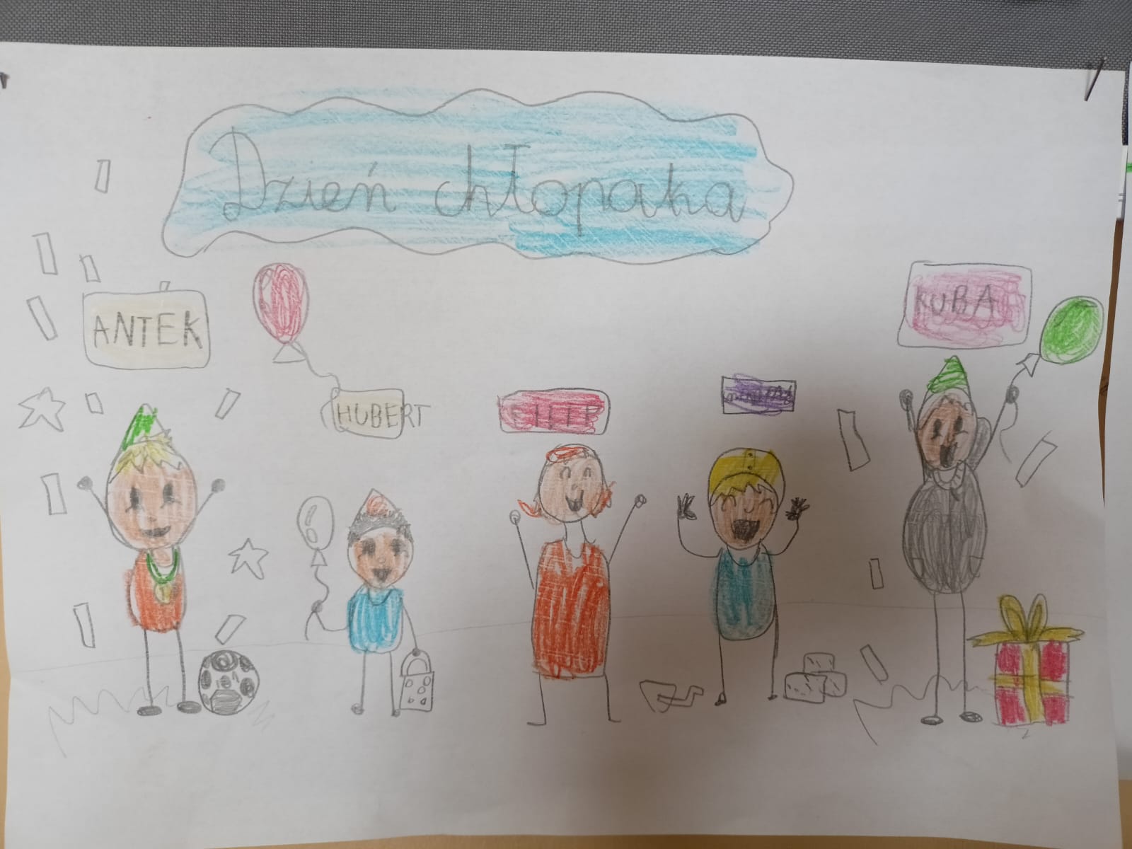Dnia 30 września w naszej świetlicy obchodziliśmy Dzień Chłopaka. Z tej okazji dziewczynki przygotowały dla kolegów laurki z życzeniami. Wspólnie odśpiewaliśmy także wesołą piosenkę dla chłopców, składając im najlepsze życzenia.