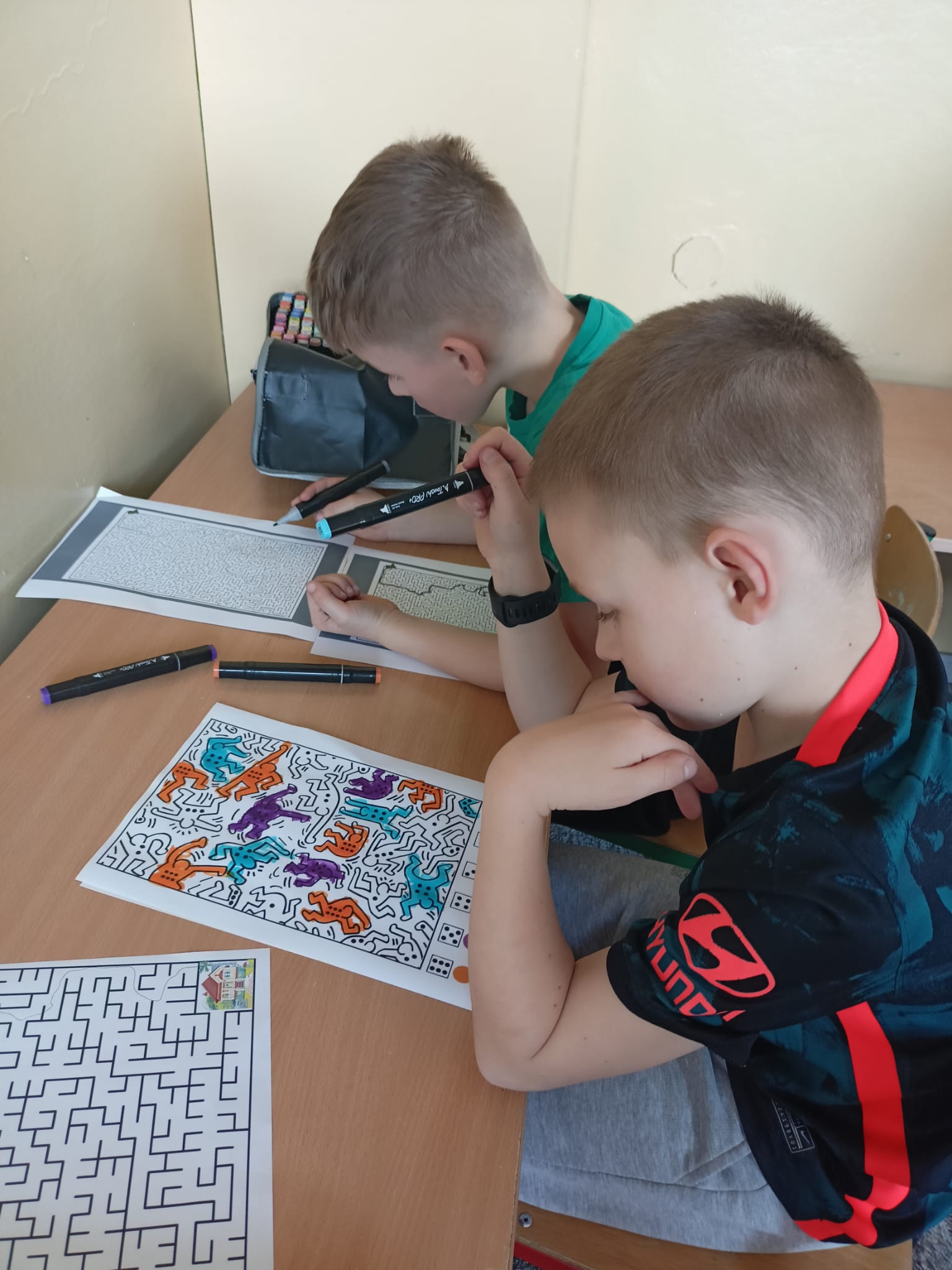 Podczas zajęć uczniowie rozwiązywali różnorodne łamigłówki matematyczne, rebusy oraz interesujące zadania logiczne. Nie zabrakło również zagadek wymagających sprytu, spostrzegawczości i współpracy w grupie. Dzieci z dużym zaangażowaniem podejmowały kolejne wyzwania i chętnie dzieliły się swoimi pomysłami na rozwiązania.