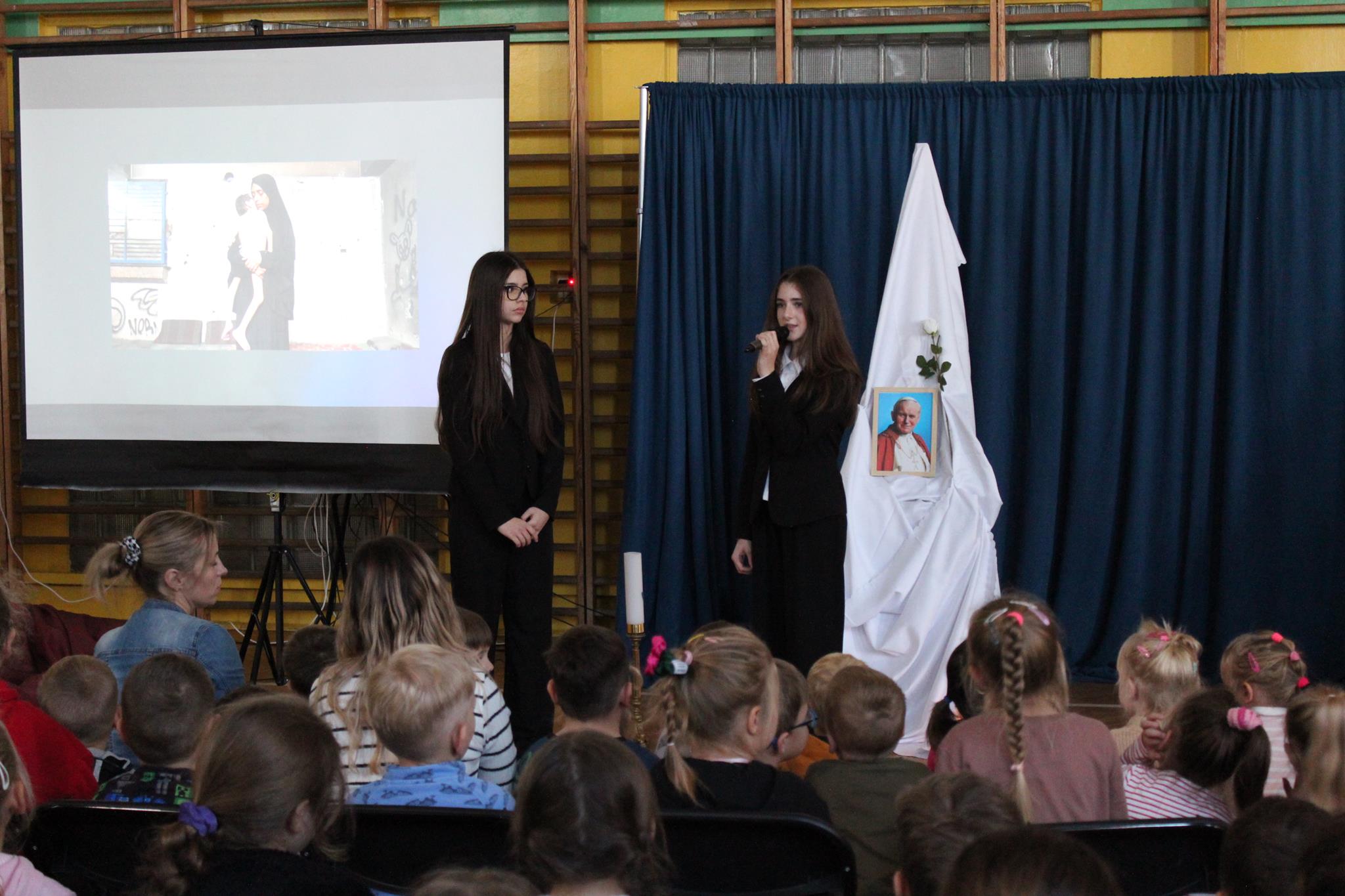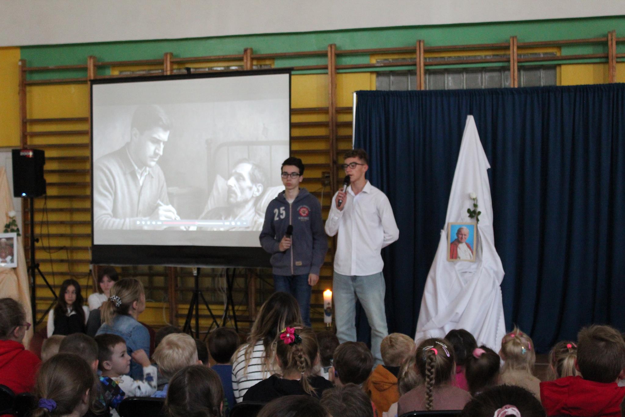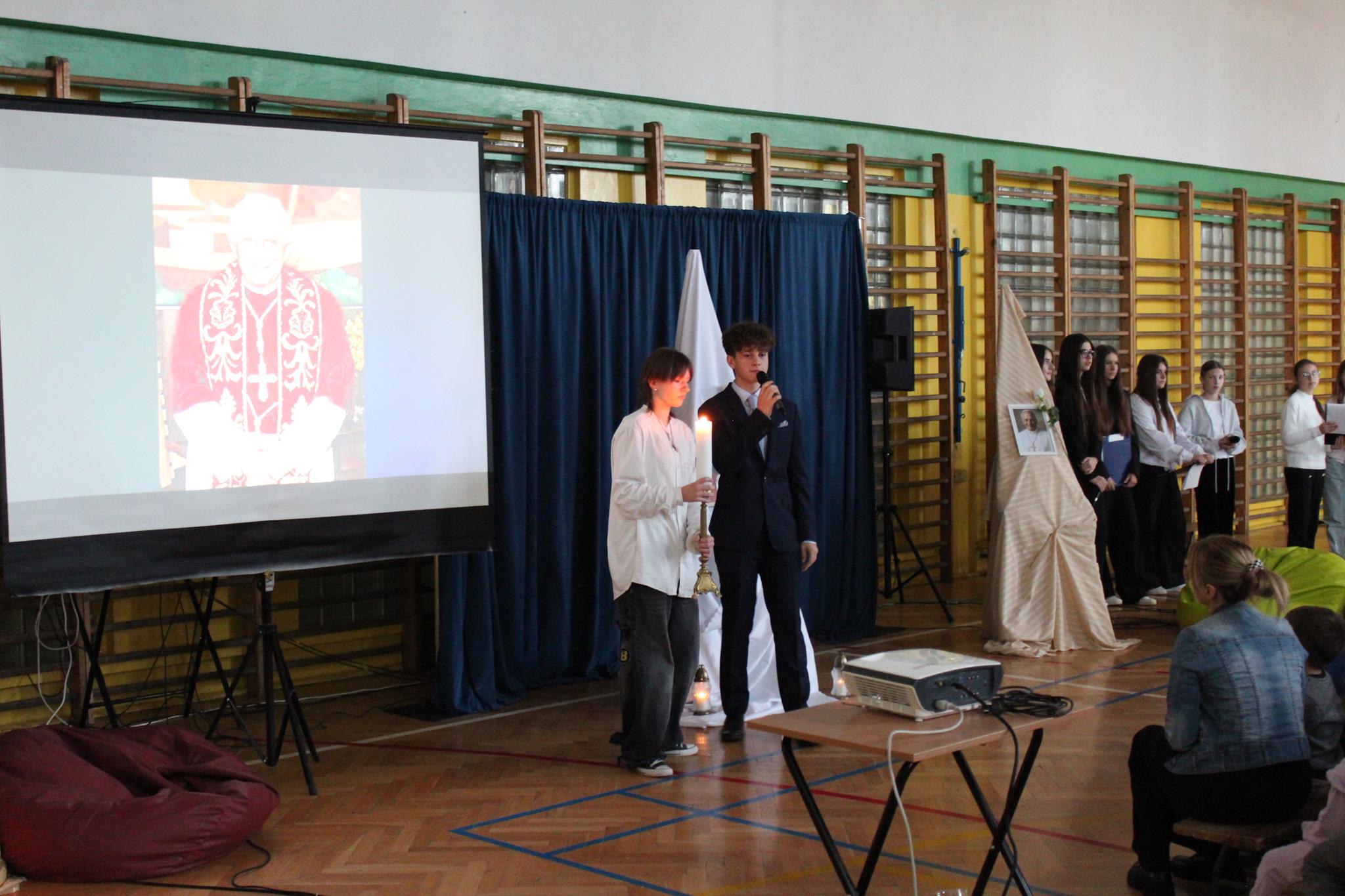 Uroczystość przebiegła w ciepłej i spokojnej atmosferze. To był naprawdę piękny dzień, w którym cała szkoła mogła razem wspominać i uczcić papieża Polaka.