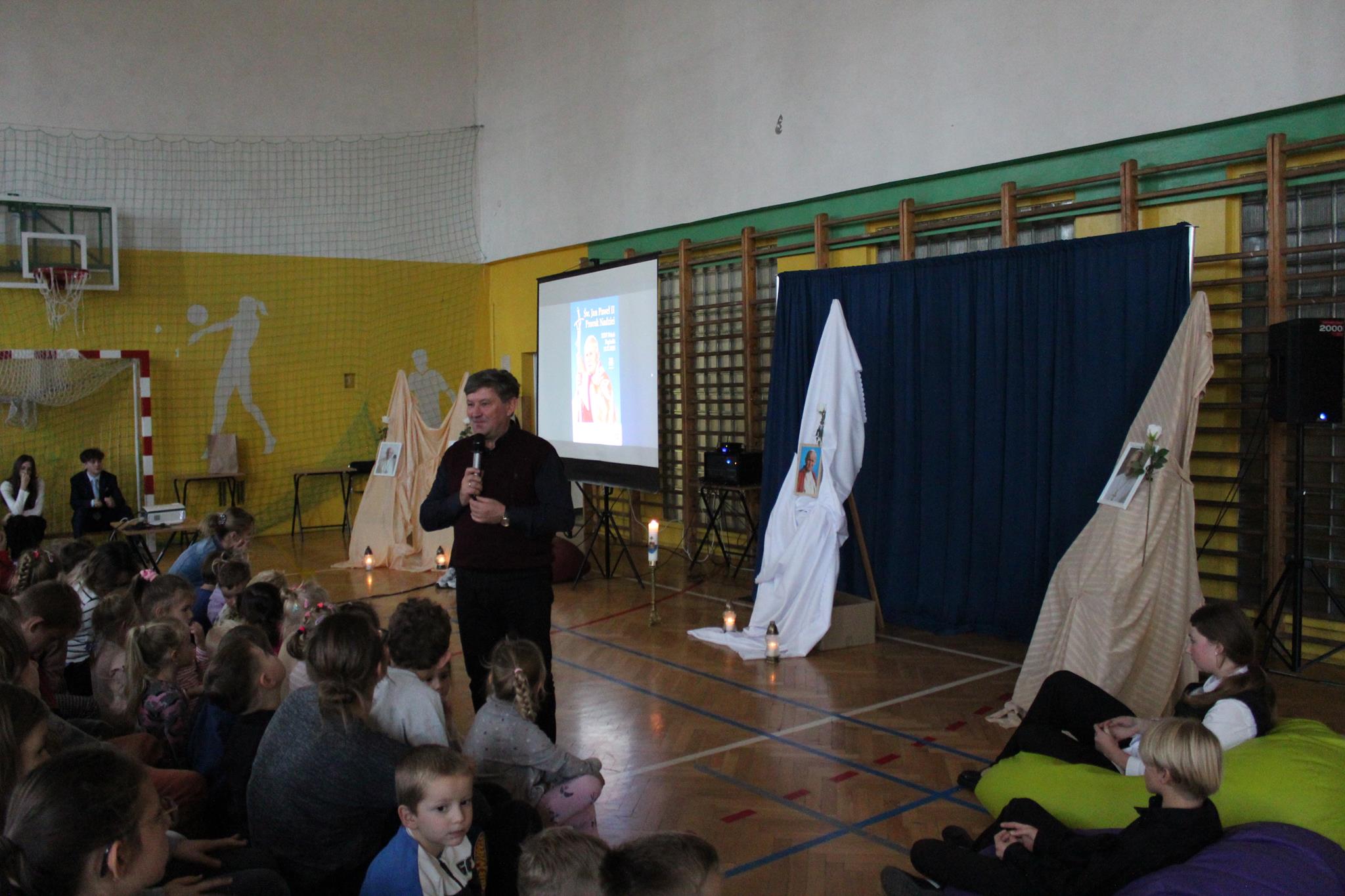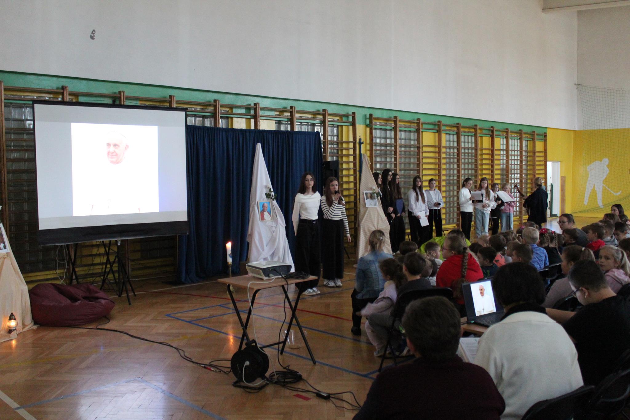 Dnia 29 października w naszej szkole obchodziliśmy Dzień Papieski. To ważne i wyjątkowe wydarzenie poświęcone pamięci świętego Jana Pawła II. Tego dnia cała szkoła spotkała się, aby wspólnie wspominać papieża Polaka.