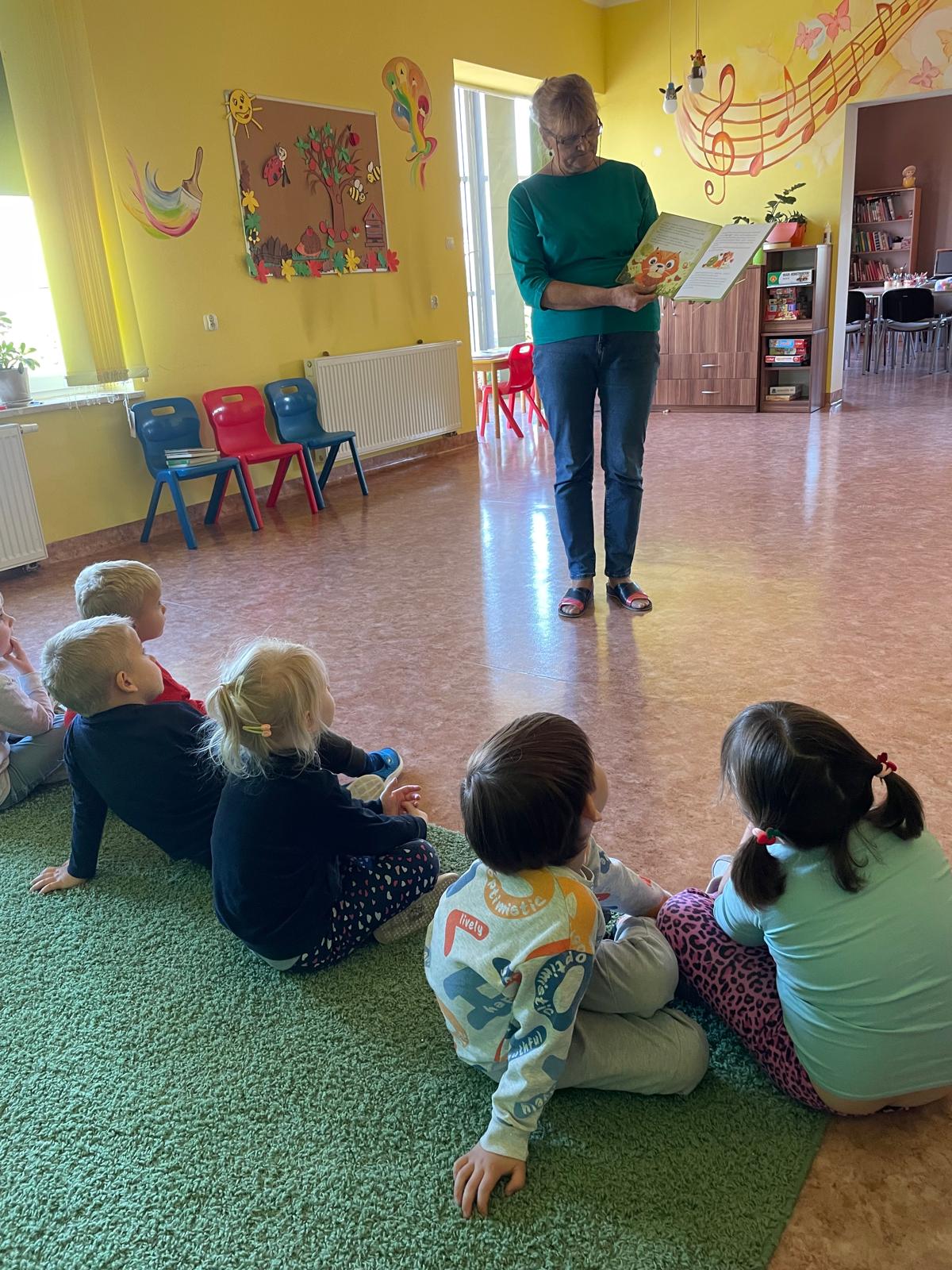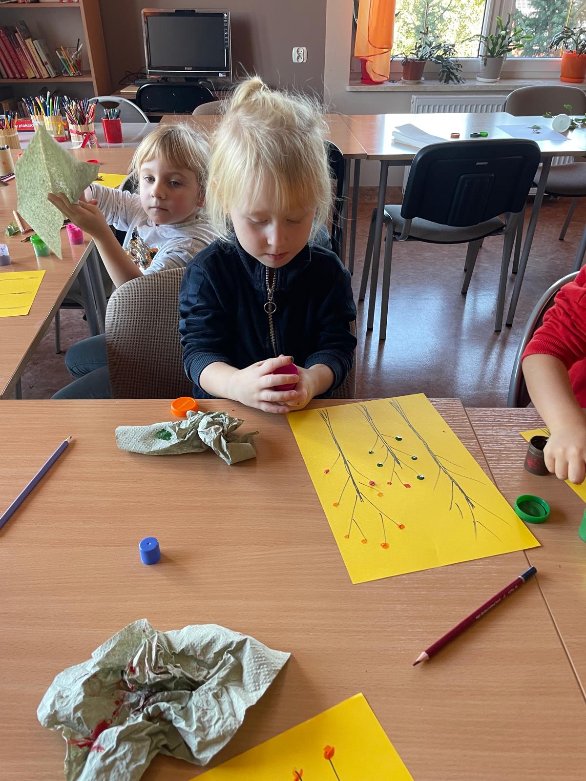 7 października dzieci z przedszkola wybrały się do biblioteki w Domu Kultury na wspólne czytanie bajki o jesieni. Po wysłuchaniu opowieści czekało na nie mnóstwo atrakcji — zabawa w tunelu, twórcze prace plastyczne oraz wesołe przedstawienia kukiełkowe. To był dzień pełen radości, śmiechu i jesiennych wrażeń!