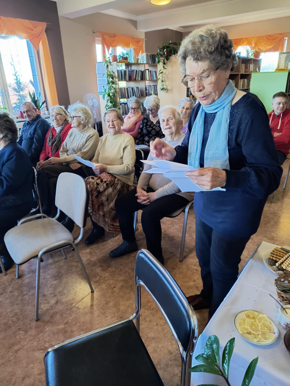 Podczas spotkania uczniowie czytali Seniorom baśnie, a następnie Seniorzy zaprezentowali własne baśnie z morałem, dzieląc się refleksjami i wspomnieniami z czasów dzieciństwa. Rozmowy o dawnych bajkach, które Seniorzy czytali swoim dzieciom, stały się okazją do międzypokoleniowej wymiany wspomnień i wartości.