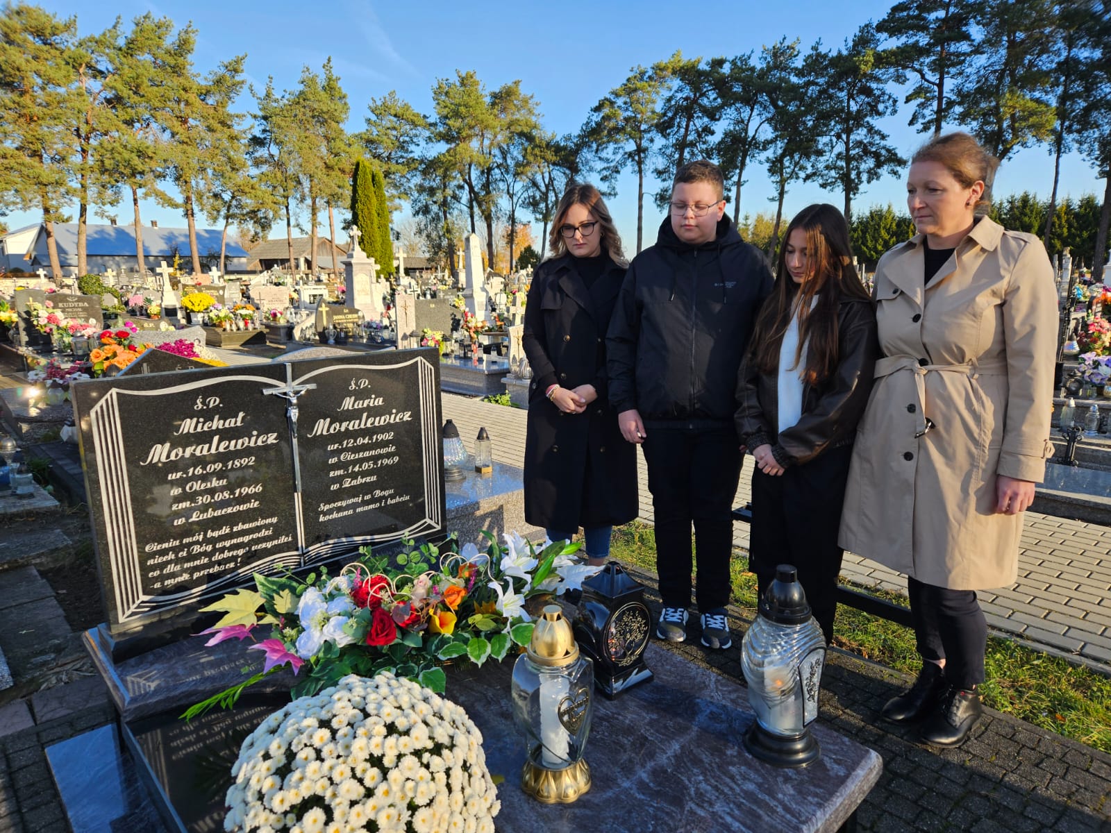 W piątek, 31 października, dyrektor szkoły wraz z przewodniczącą Rady Rodziców oraz opiekunem Samorządu i przedstawicielami Samorządu Uczniowskiego udali się na cmentarz w Cieszanowie, aby przed dniem Wszystkich Świętych oddać hołd Pani Marii Moralewicz, patronce naszej szkoły.