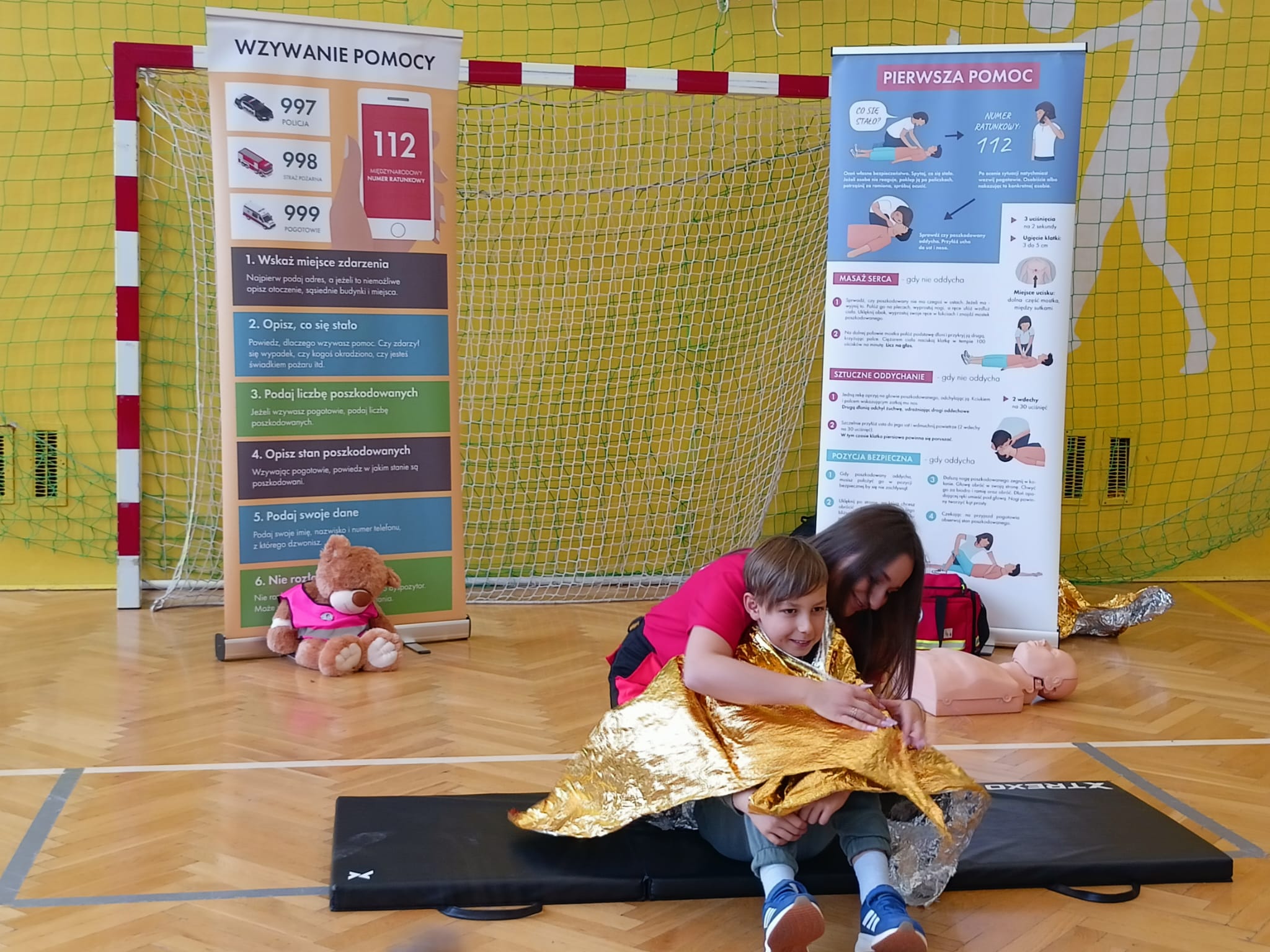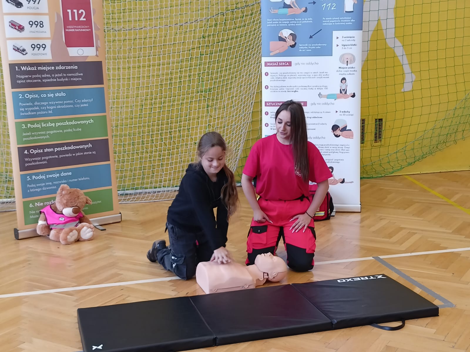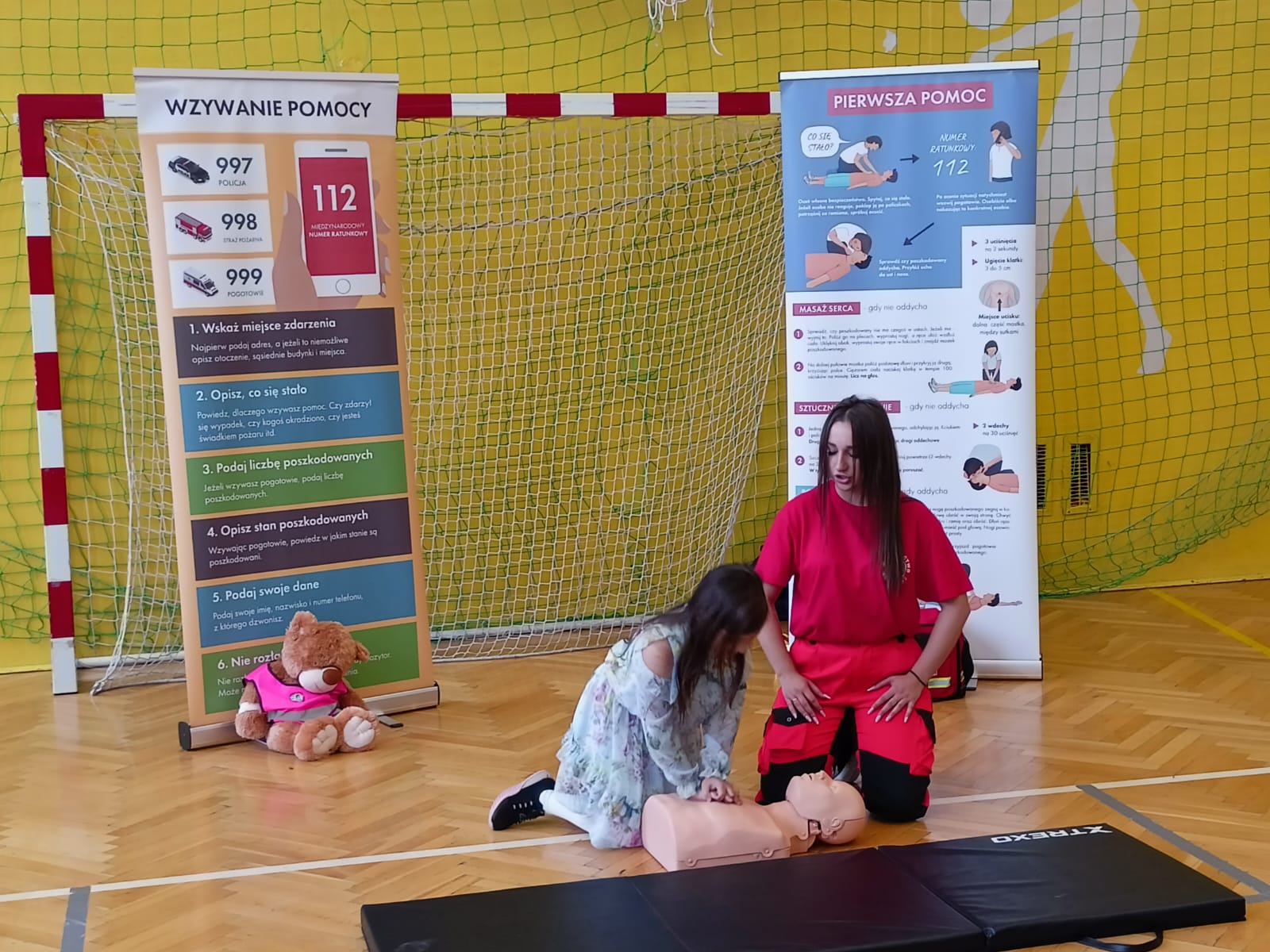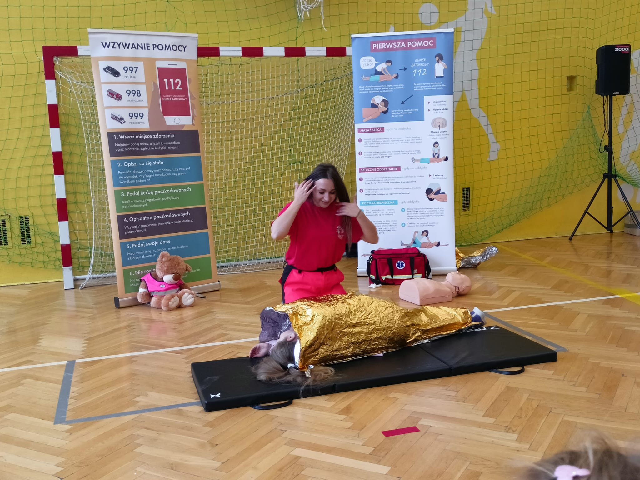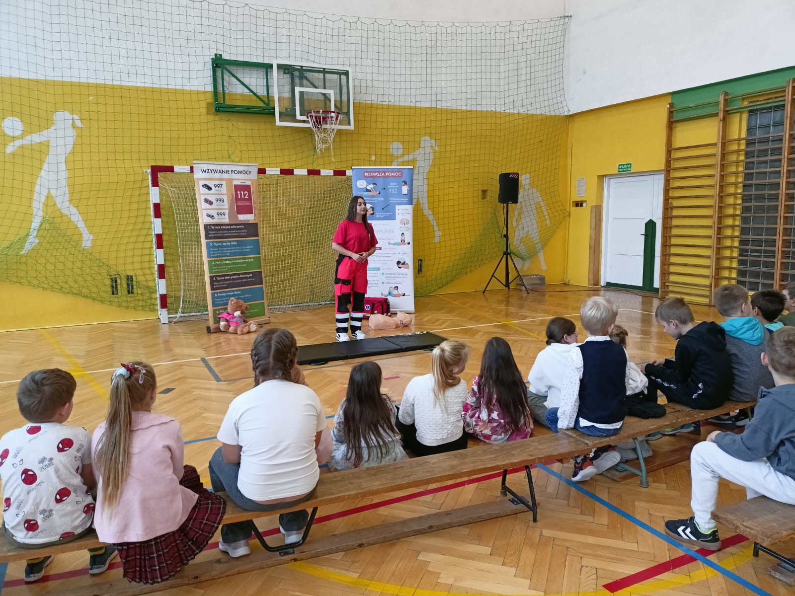 Uczniowie klas I–III wzięli udział w szkoleniu z zakresu pierwszej pomocy przedmedycznej, które poprowadził ratownik medyczny. Podczas zajęć dzieci uczyły się, jak prawidłowo wezwać pomoc, sprawdzić przytomność i oddech poszkodowanego oraz jak reagować w sytuacjach zagrożenia.
