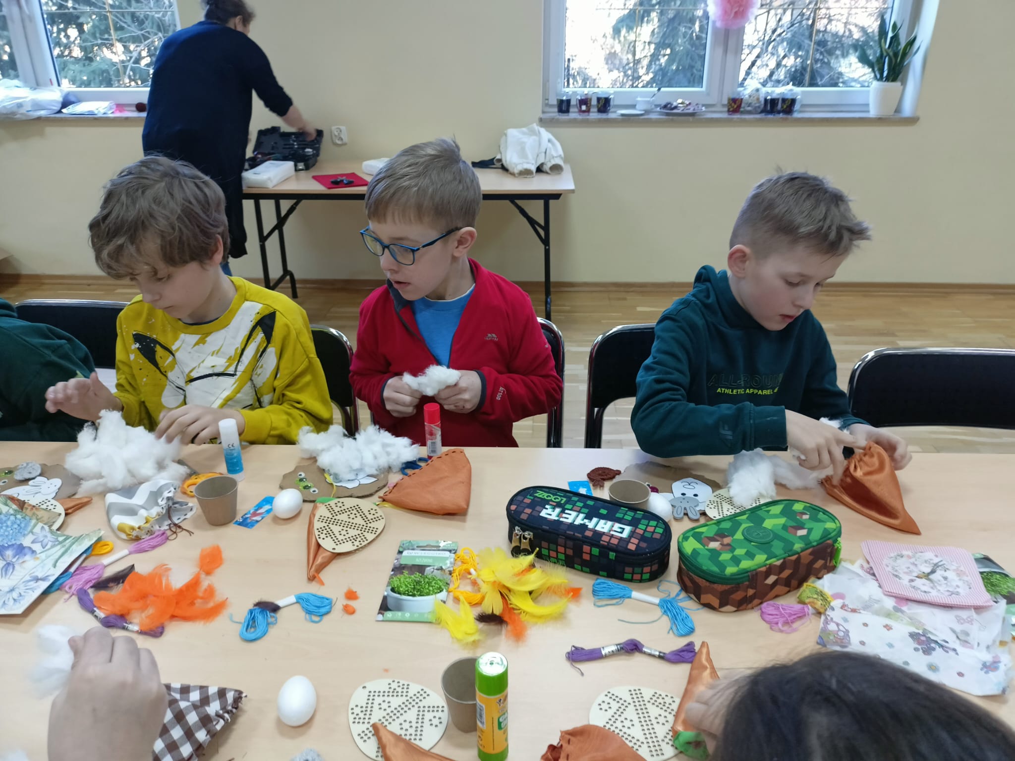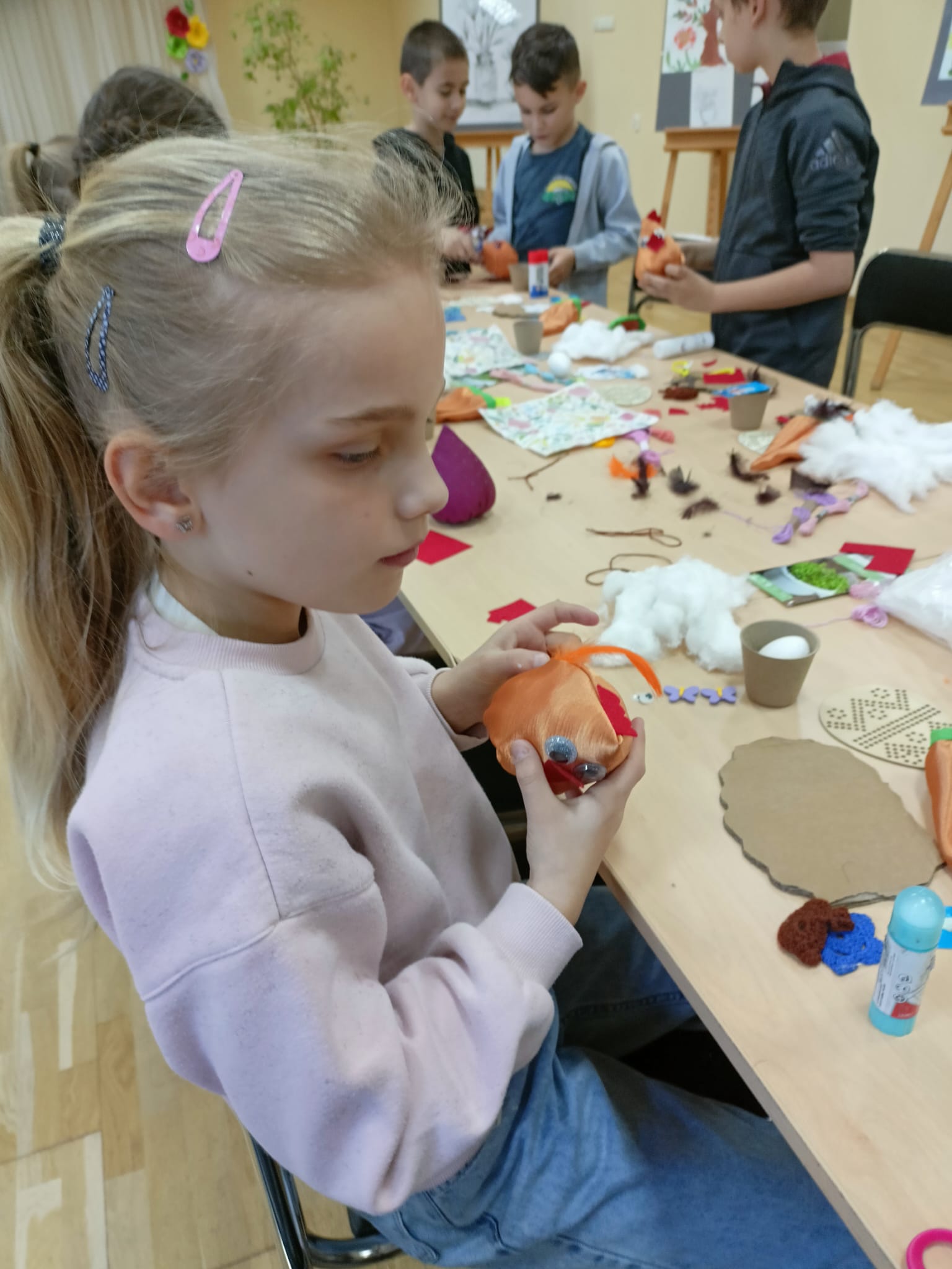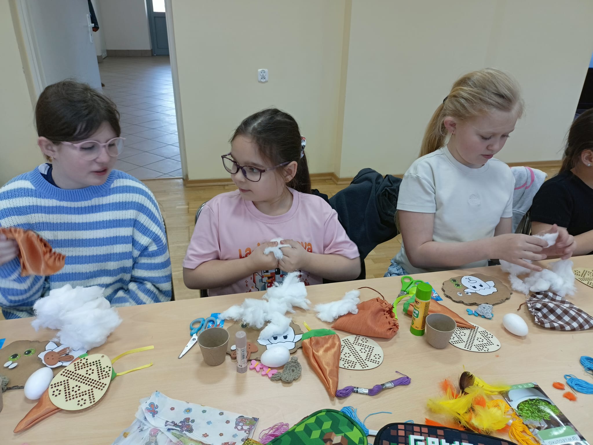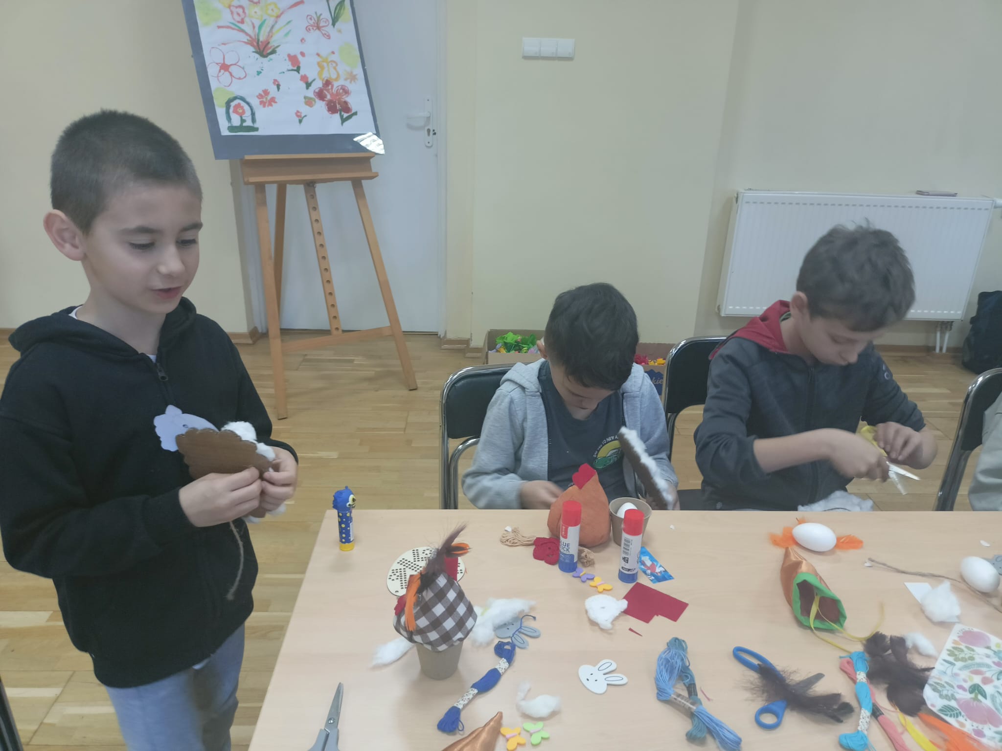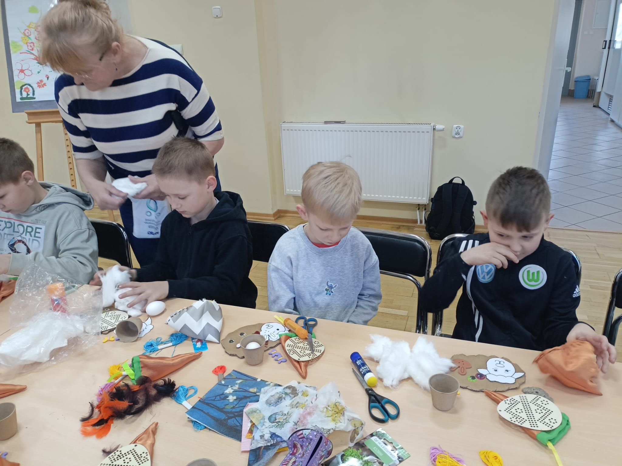 Podczas zajęć dzieci miały okazję rozwijać swoją kreatywność i zdolności manualne, wykonując różnorodne ozdoby wielkanocne. Wśród przygotowanych aktywności znalazły się:
