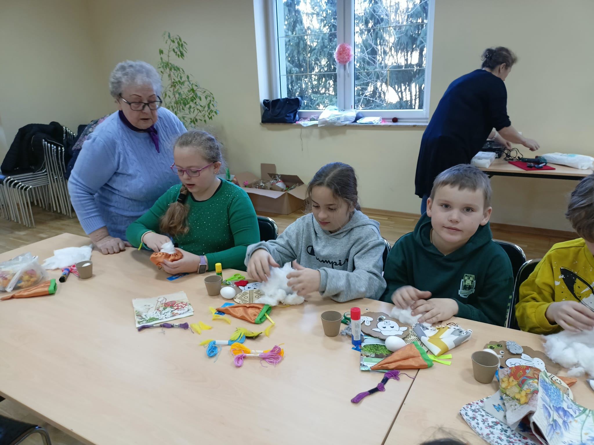 Wszystkie prace były koordynowane przez seniorów oraz opiekuna, przy wsparciu wychowawców klas. Warsztaty przebiegały w bardzo miłej, serdecznej atmosferze, sprzyjającej integracji międzypokoleniowej i wspólnej zabawie.