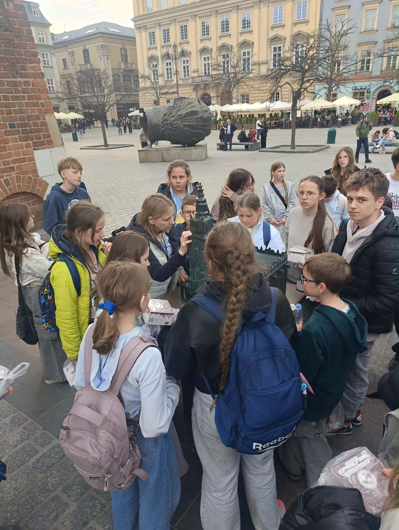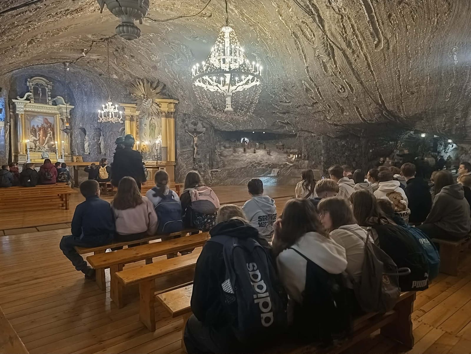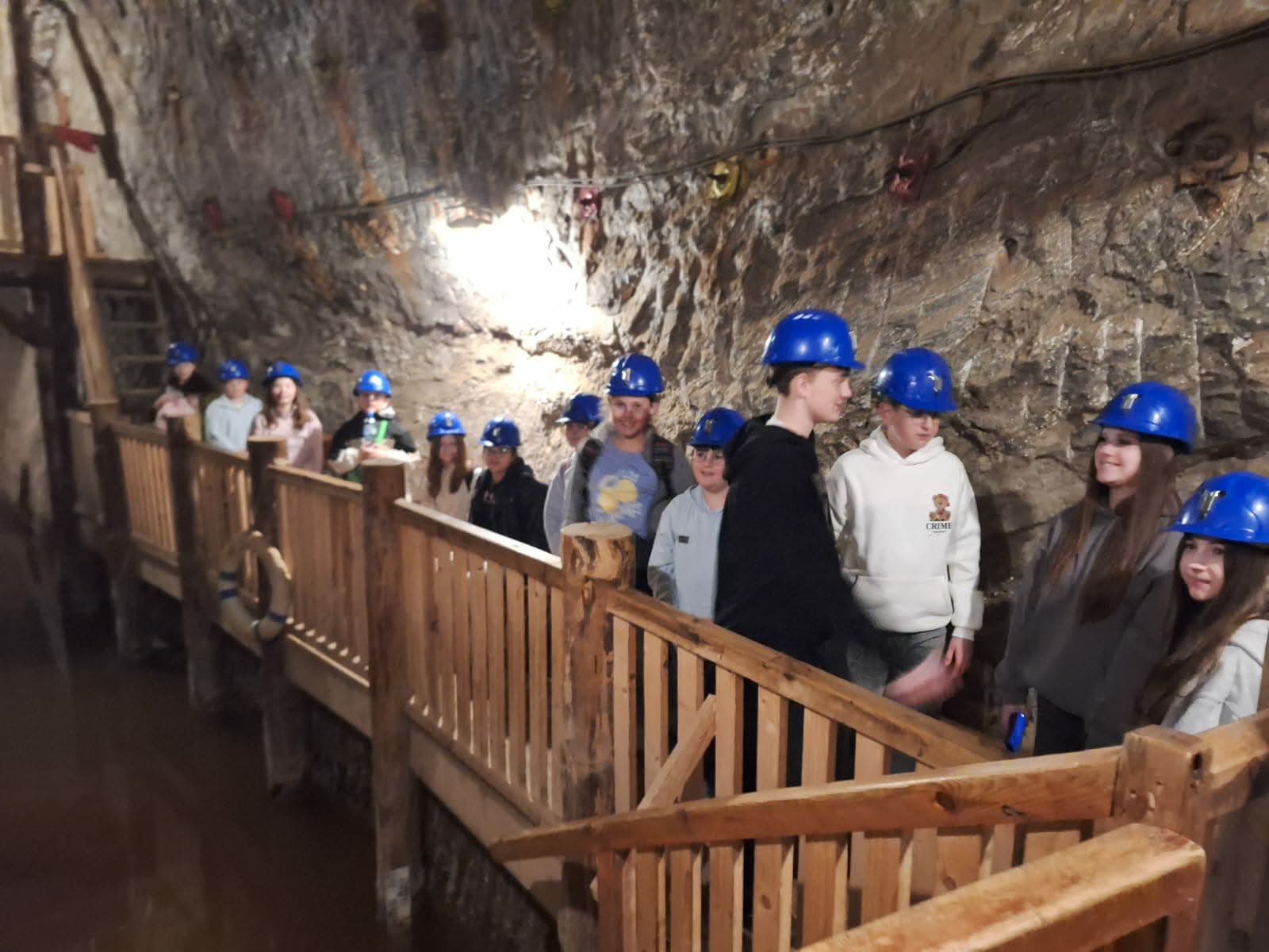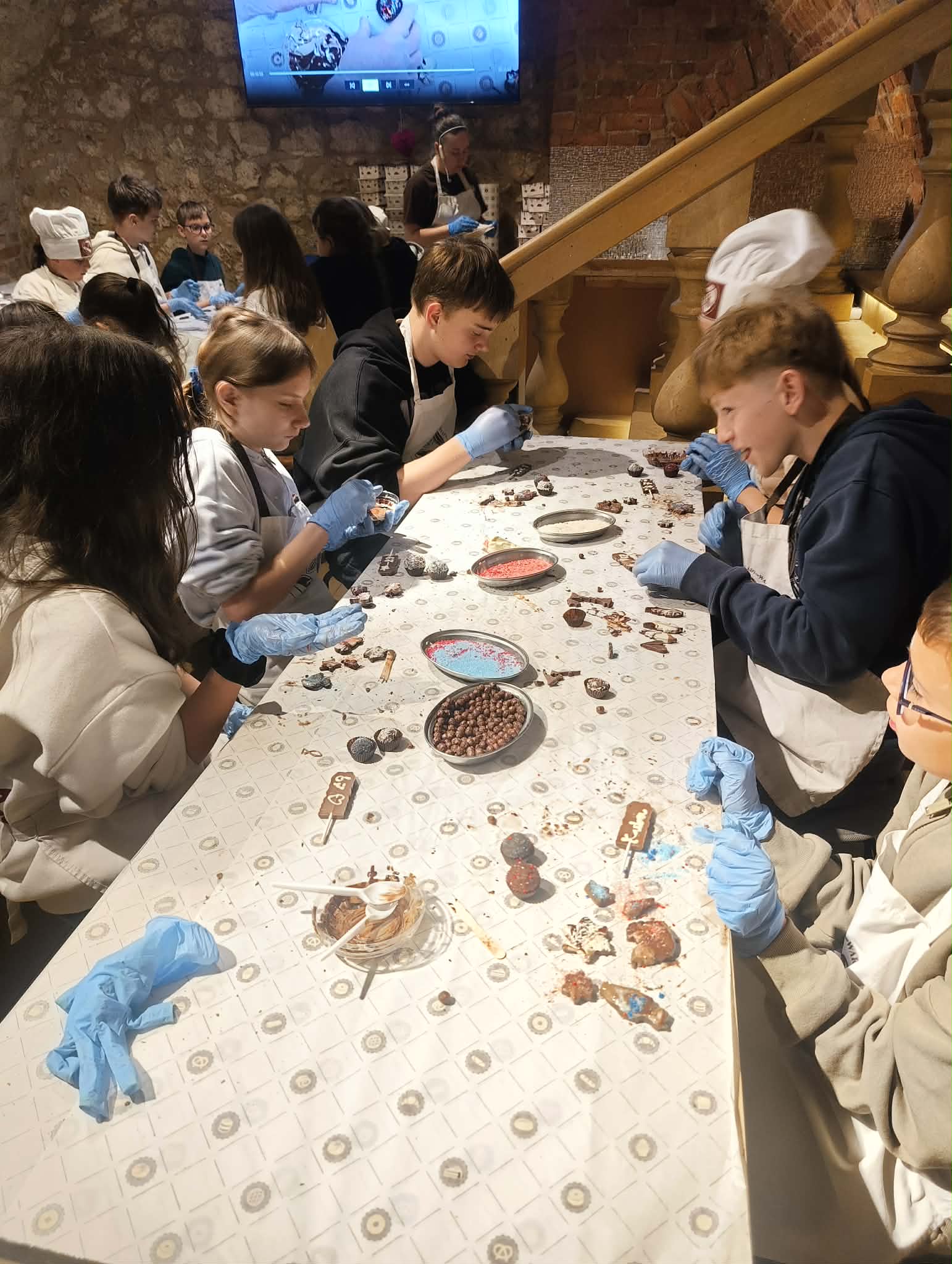 W dniu 16.04.2026r. klasy IV- VI uczestniczyły w wyjeździe edukacyjnym do Bochni i Krakowa. Wycieczka rozpoczęła się od zwiedzania Kopalni Soli w Bochni, gdzie pokonując najdłuższą trasę turystyczną, uczniowie mieli okazję poznać historię kopalni i miasta, przepłynąć łodzią po wodzie solankowej oraz spędzić aktywnie czas w części rekreacyjnej. Następnym przystankiem był Kraków. Po pysznym obiedzie, pani przewodnik opowiedziała o najciekawszych zakątkach Krakowa w okolicach Rynku Głównego oraz o wspaniałych obrazach znajdujących się w muzeum w Sukiennicach. Ostatnią atrakcją były warsztaty w Krakowskiej Manufakturze Czekolady, gdzie po krótkim oprowadzeniu i przedstawieniu procesu produkcji czekolady uczniowie tworzyli własne praliny.