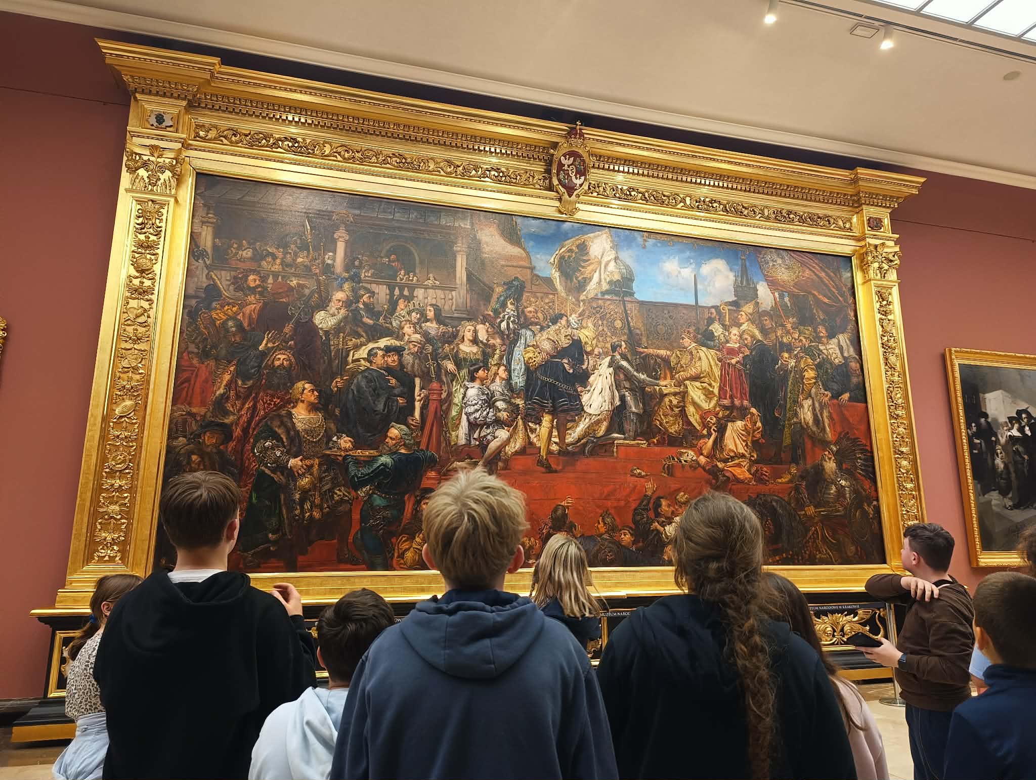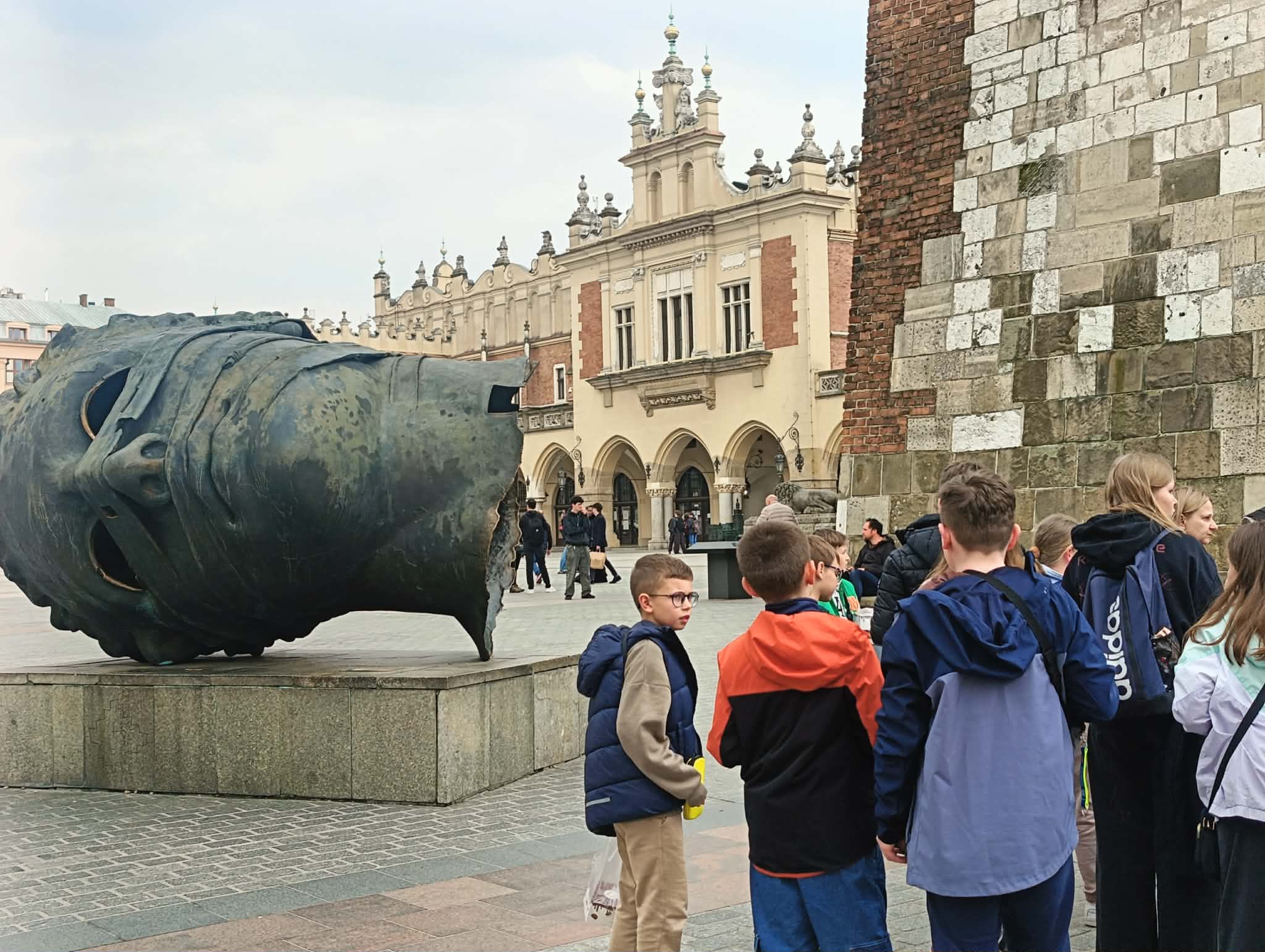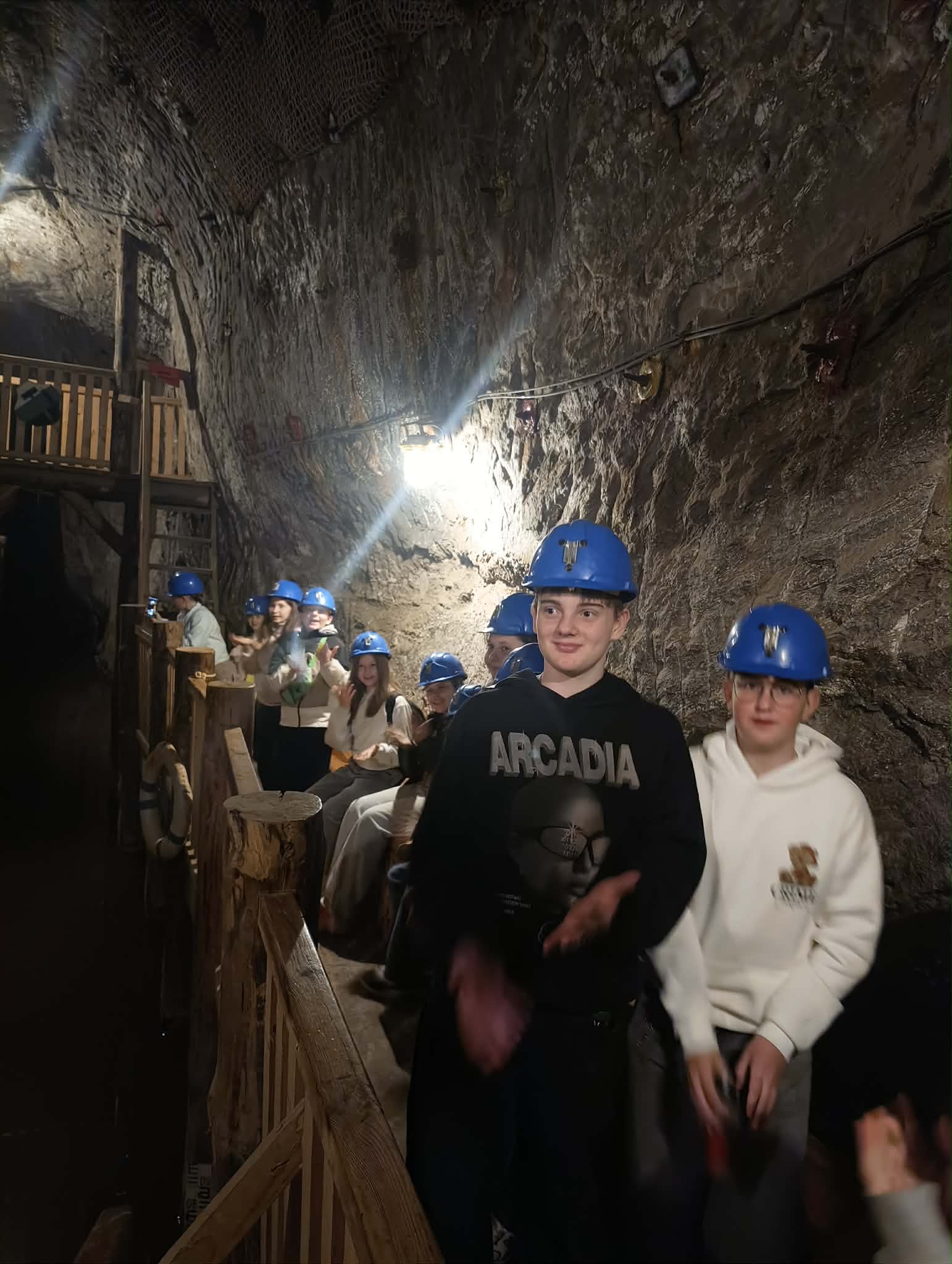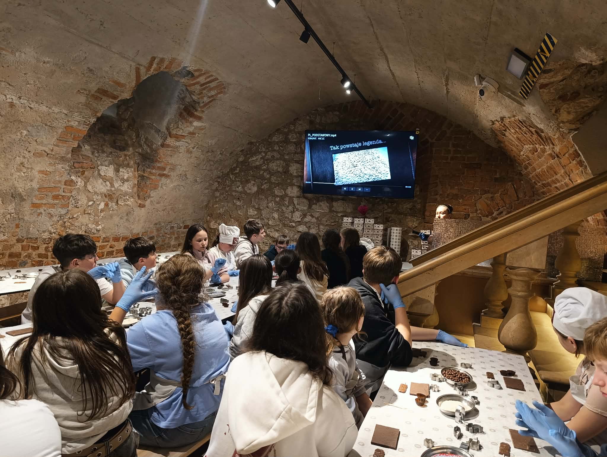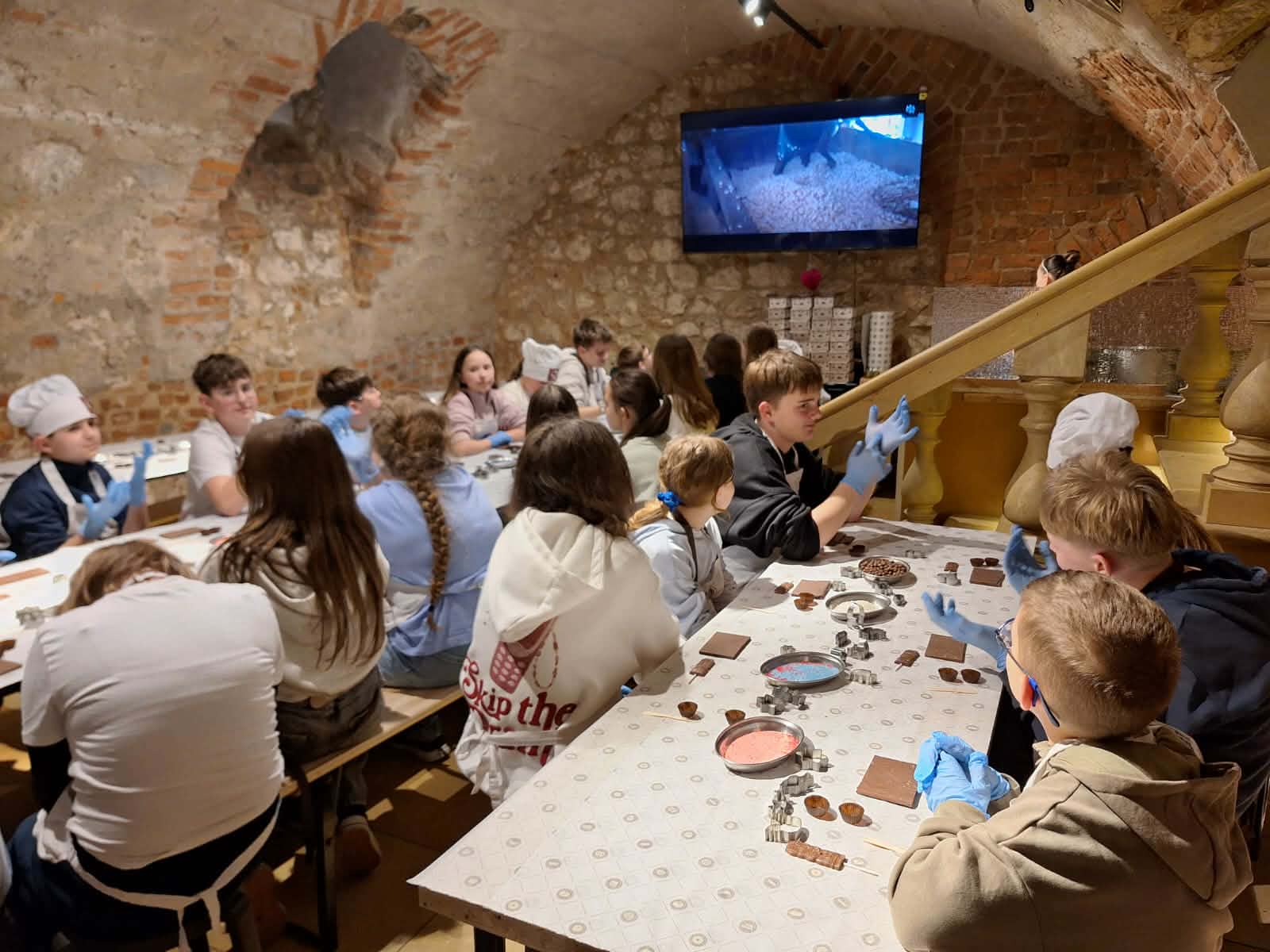 W dniu 16.04.2026r. klasy IV- VI uczestniczyły w wyjeździe edukacyjnym do Bochni i Krakowa. Wycieczka rozpoczęła się od zwiedzania Kopalni Soli w Bochni, gdzie pokonując najdłuższą trasę turystyczną, uczniowie mieli okazję poznać historię kopalni i miasta, przepłynąć łodzią po wodzie solankowej oraz spędzić aktywnie czas w części rekreacyjnej. Następnym przystankiem był Kraków. Po pysznym obiedzie, pani przewodnik opowiedziała o najciekawszych zakątkach Krakowa w okolicach Rynku Głównego oraz o wspaniałych obrazach znajdujących się w muzeum w Sukiennicach. Ostatnią atrakcją były warsztaty w Krakowskiej Manufakturze Czekolady, gdzie po krótkim oprowadzeniu i przedstawieniu procesu produkcji czekolady uczniowie tworzyli własne praliny.