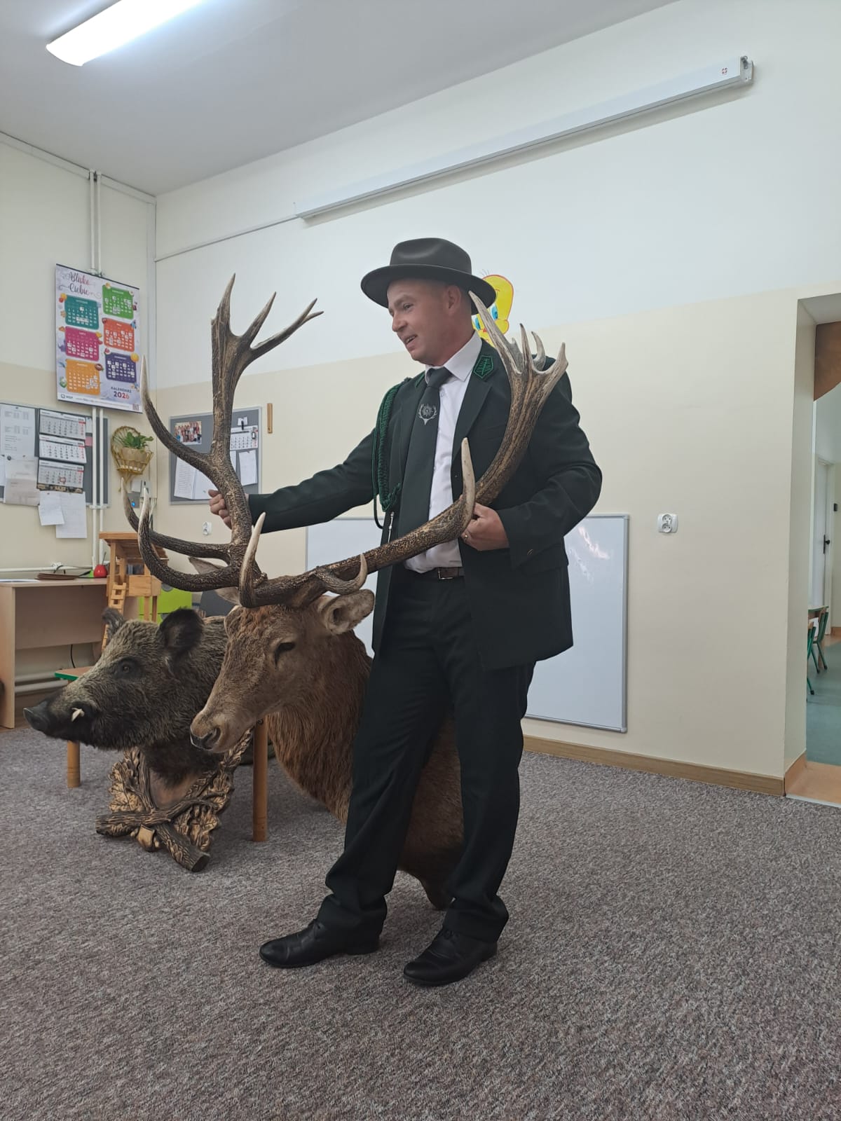 Zaproszony do przedszkola gość Pan Emil Majdan, przeprowadził interesujące zajęcia na temat mieszkańców lasu. Dowiedzieliśmy się wiele o sposobie życia i zachowaniu się zwierząt w stosunku do człowieka. Dziękujemy Panu Emilowi za inspirujące spotkanie.