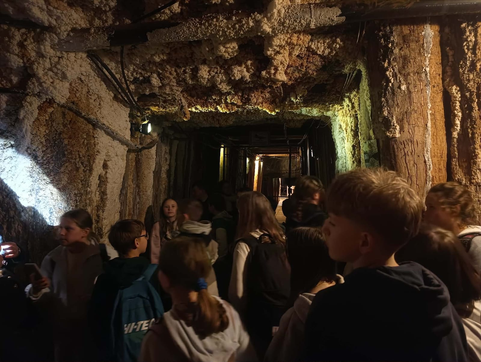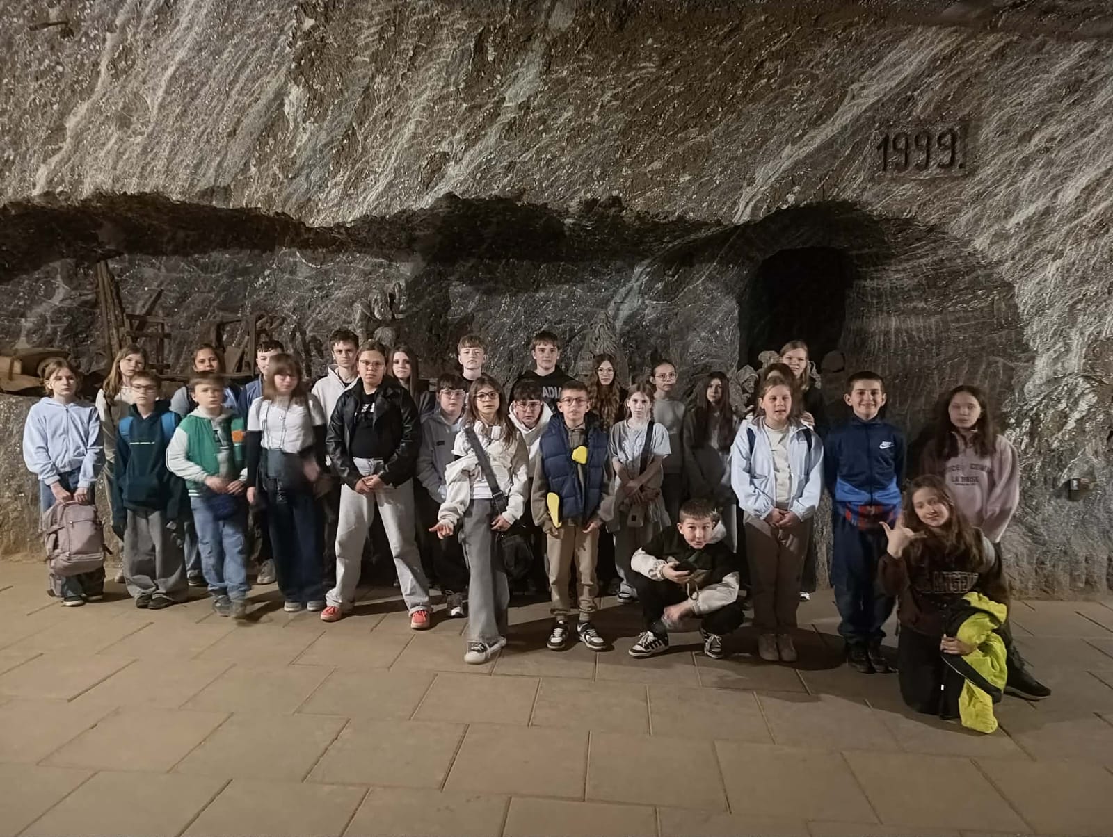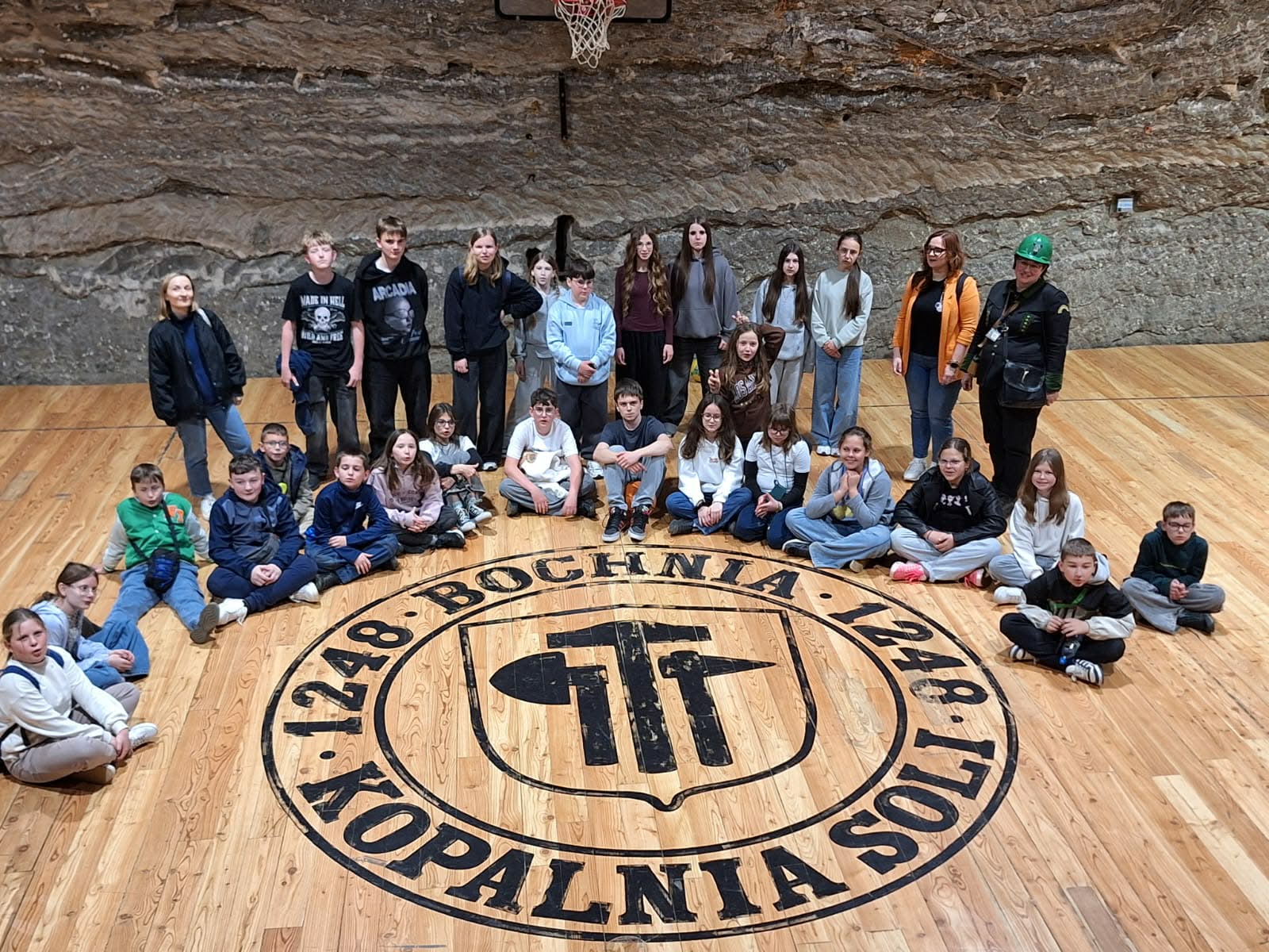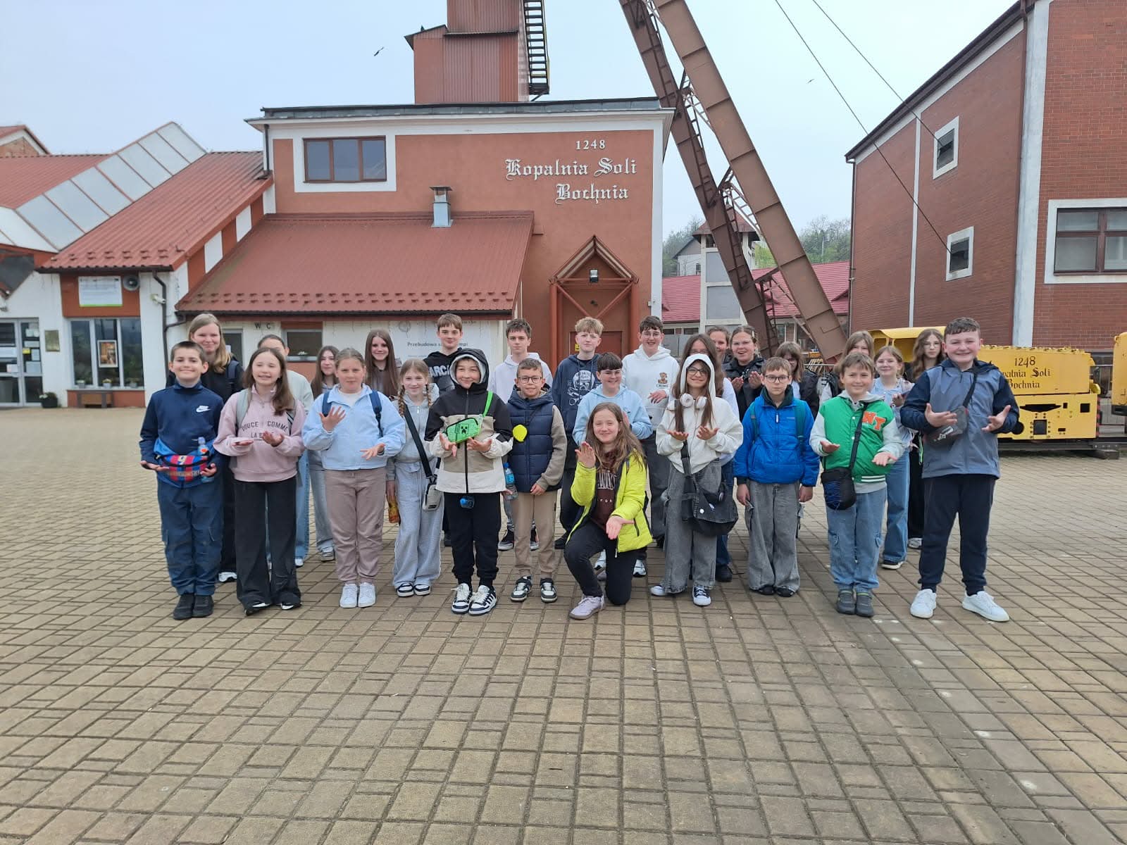 W dniu 16.04.2026r. klasy IV- VI uczestniczyły w wyjeździe edukacyjnym do Bochni i Krakowa. Wycieczka rozpoczęła się od zwiedzania Kopalni Soli w Bochni, gdzie pokonując najdłuższą trasę turystyczną, uczniowie mieli okazję poznać historię kopalni i miasta, przepłynąć łodzią po wodzie solankowej oraz spędzić aktywnie czas w części rekreacyjnej. Następnym przystankiem był Kraków. Po pysznym obiedzie, pani przewodnik opowiedziała o najciekawszych zakątkach Krakowa w okolicach Rynku Głównego oraz o wspaniałych obrazach znajdujących się w muzeum w Sukiennicach. Ostatnią atrakcją były warsztaty w Krakowskiej Manufakturze Czekolady, gdzie po krótkim oprowadzeniu i przedstawieniu procesu produkcji czekolady uczniowie tworzyli własne praliny.