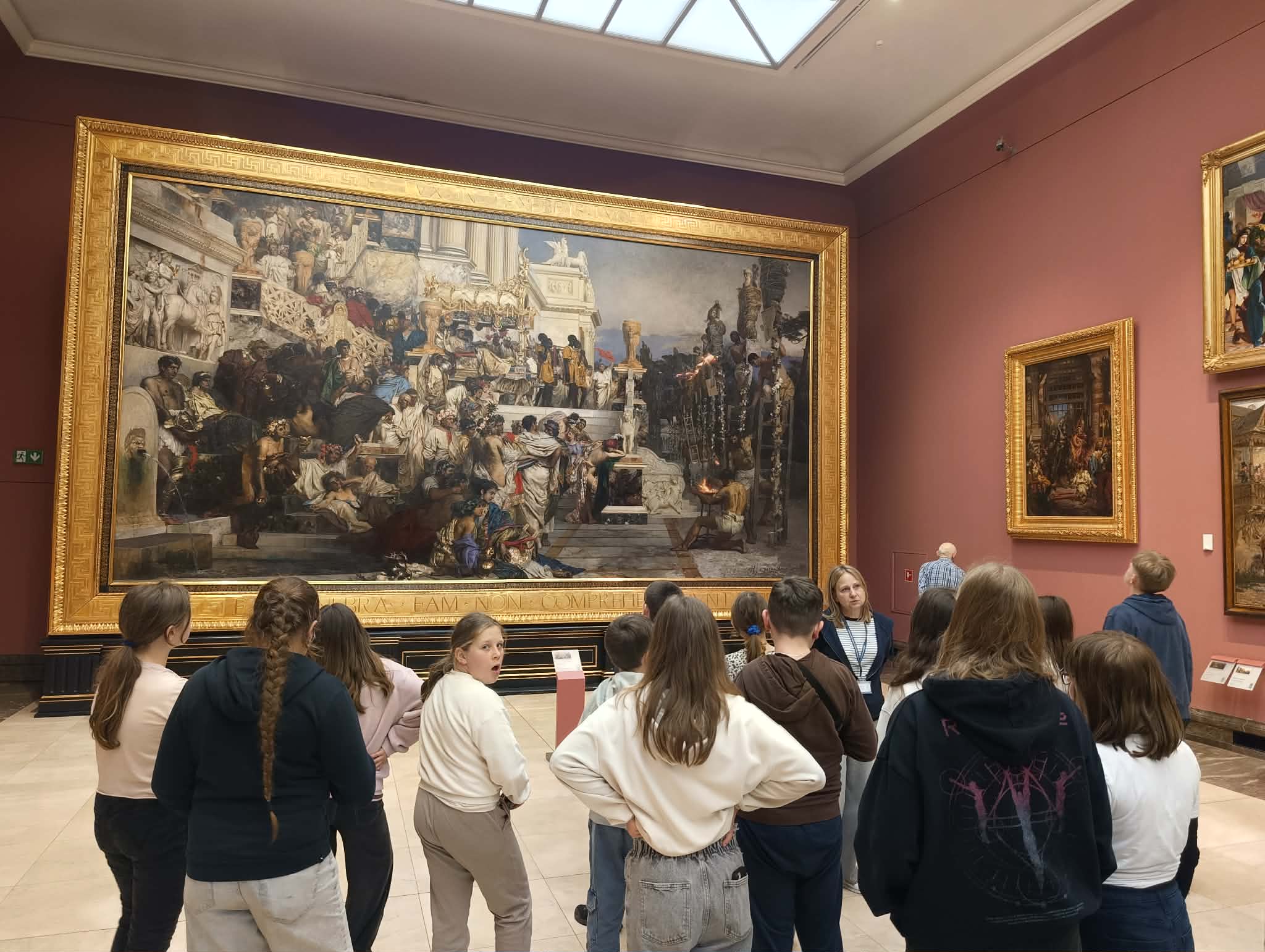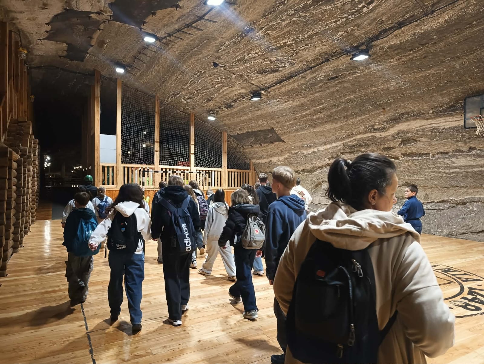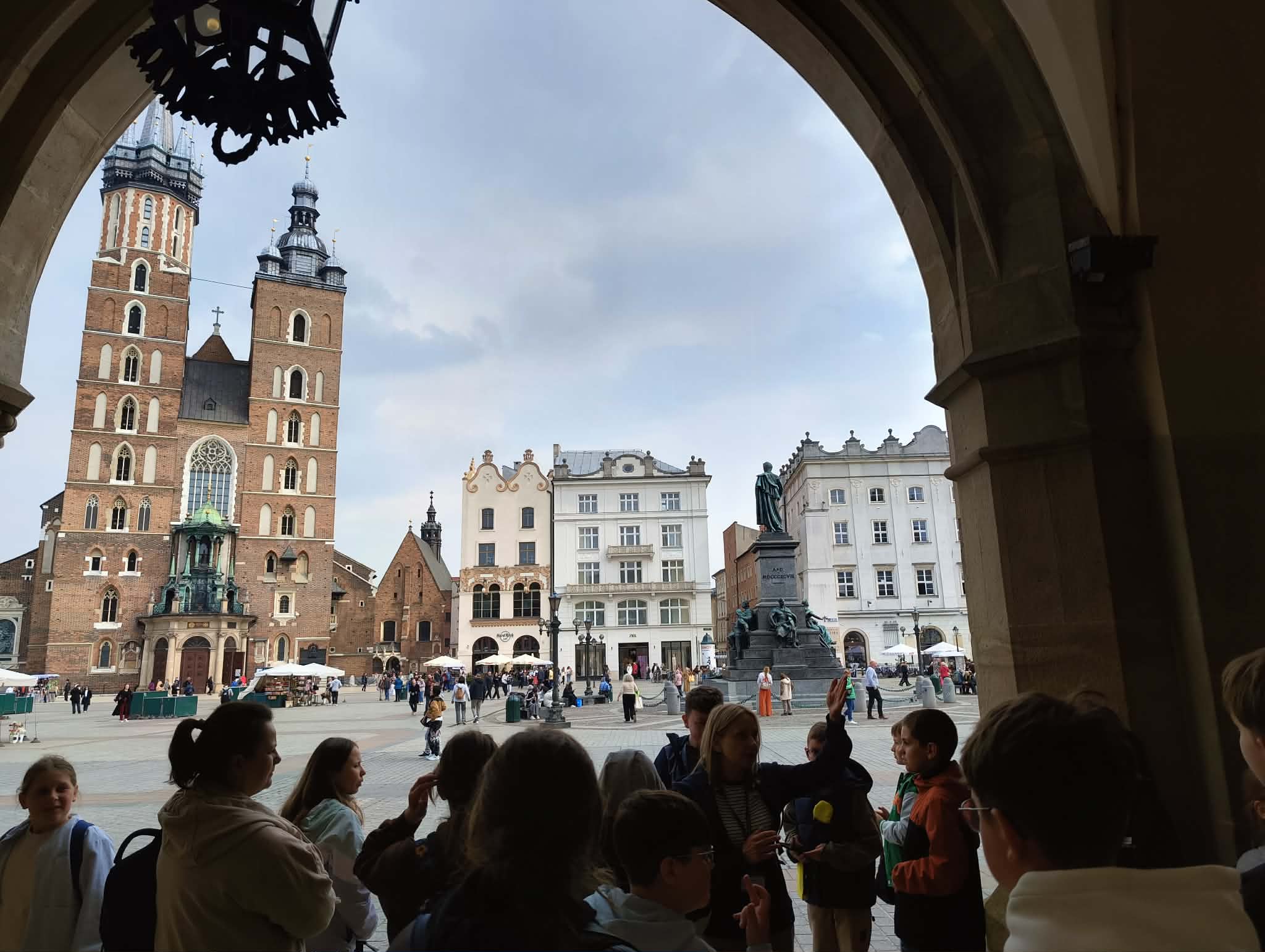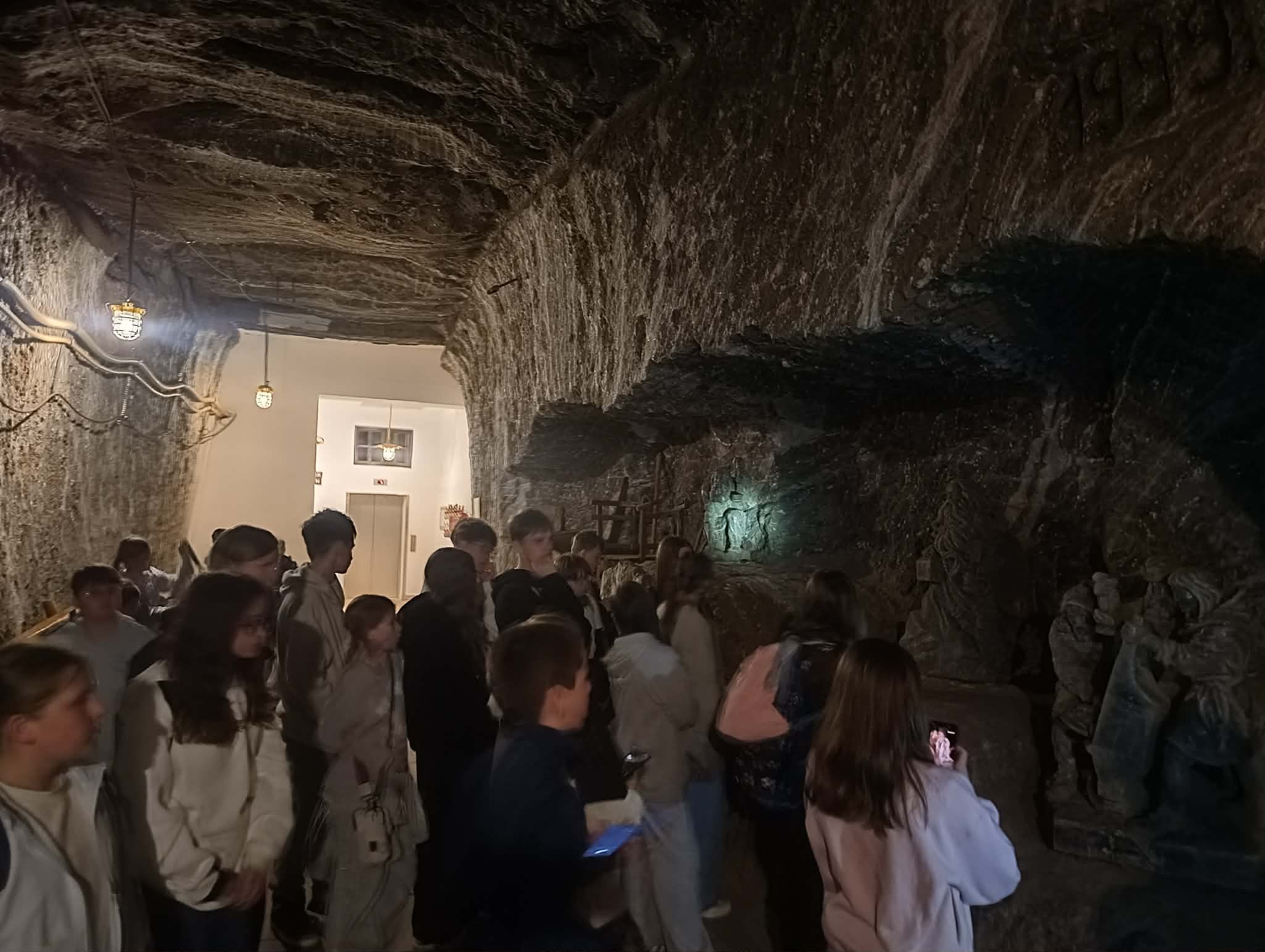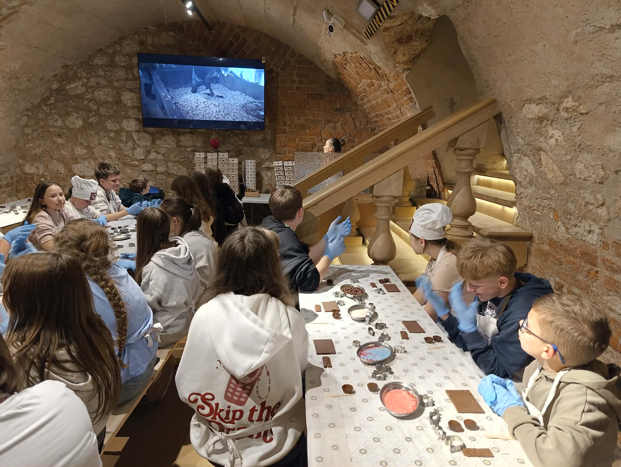 W dniu 16.04.2026r. klasy IV- VI uczestniczyły w wyjeździe edukacyjnym do Bochni i Krakowa. Wycieczka rozpoczęła się od zwiedzania Kopalni Soli w Bochni, gdzie pokonując najdłuższą trasę turystyczną, uczniowie mieli okazję poznać historię kopalni i miasta, przepłynąć łodzią po wodzie solankowej oraz spędzić aktywnie czas w części rekreacyjnej. Następnym przystankiem był Kraków. Po pysznym obiedzie, pani przewodnik opowiedziała o najciekawszych zakątkach Krakowa w okolicach Rynku Głównego oraz o wspaniałych obrazach znajdujących się w muzeum w Sukiennicach. Ostatnią atrakcją były warsztaty w Krakowskiej Manufakturze Czekolady, gdzie po krótkim oprowadzeniu i przedstawieniu procesu produkcji czekolady uczniowie tworzyli własne praliny.