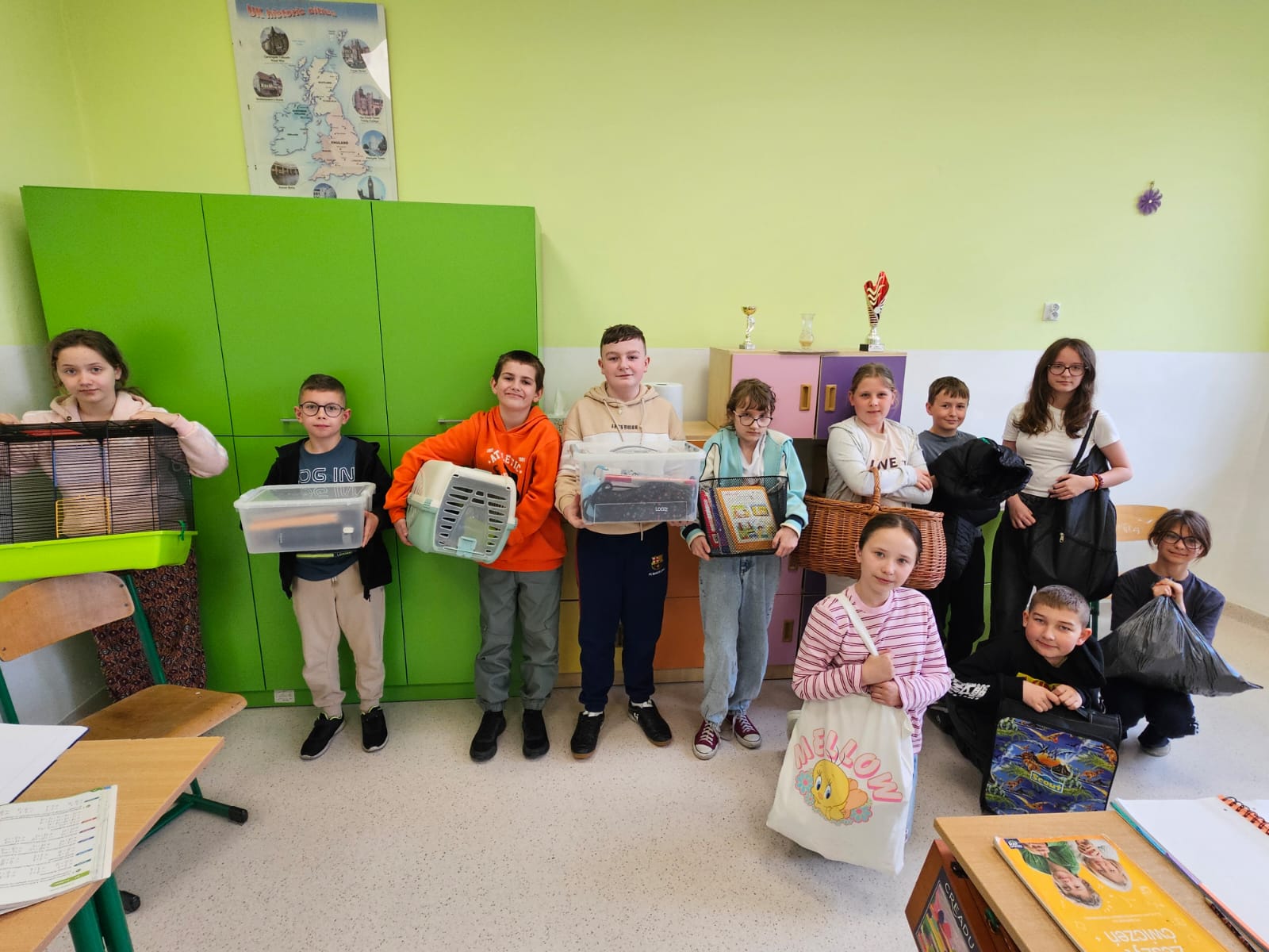 Tego dnia uczniowie przyszli do szkoły bez tradycyjnych plecaków, przynosząc swoje książki i przybory w najróżniejszych, często bardzo pomysłowych zamiennikach.